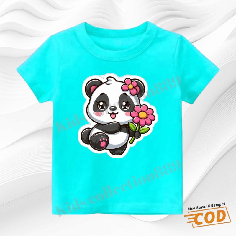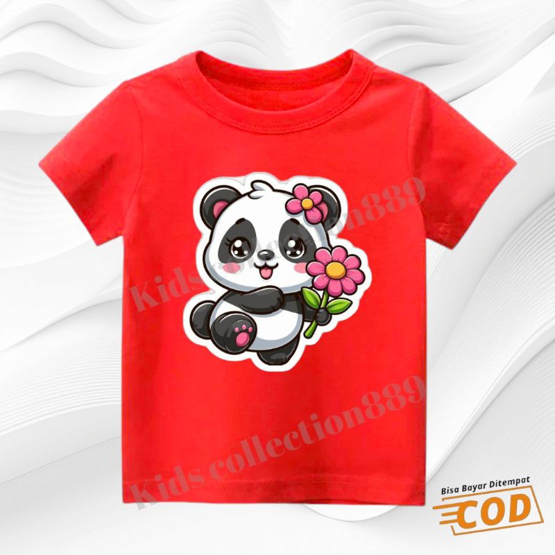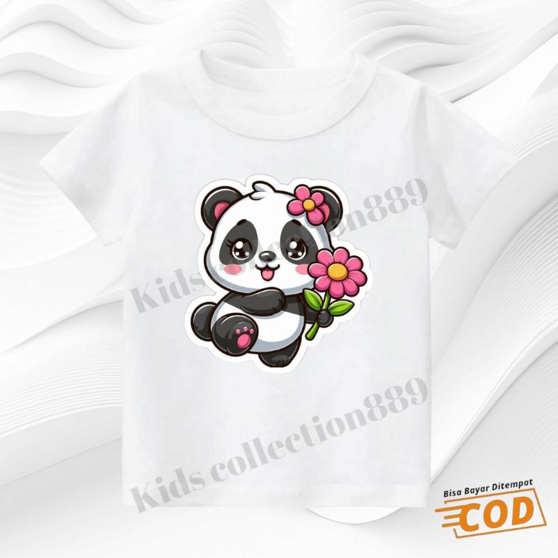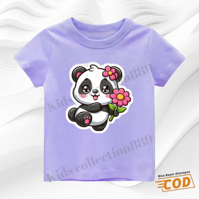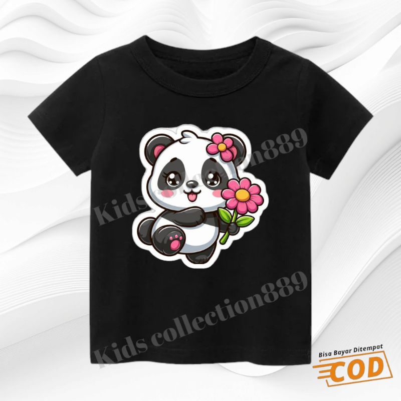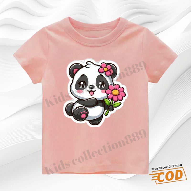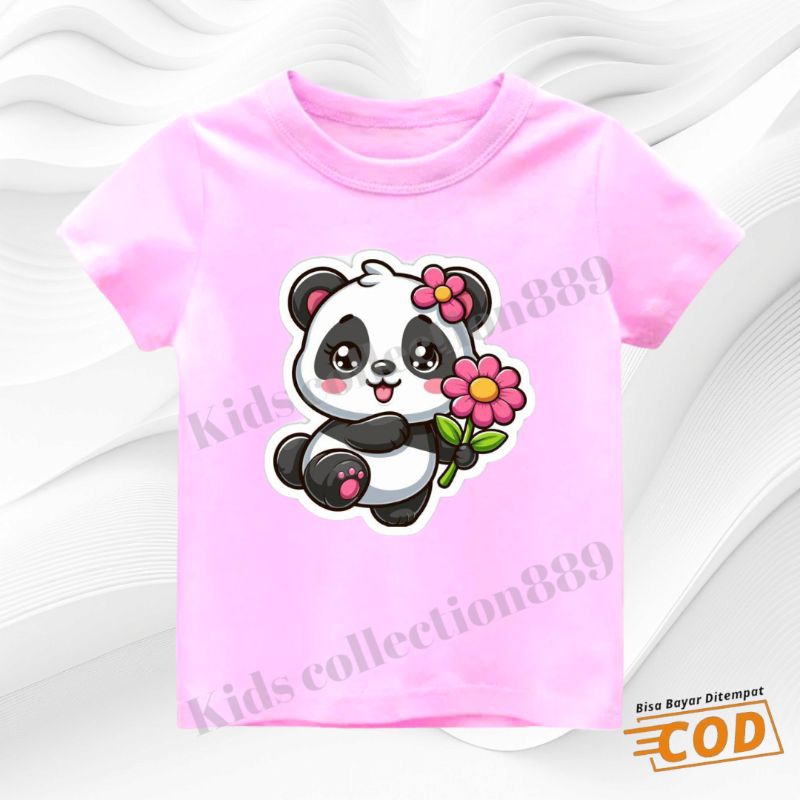 Baju Kaos anak perempuan/ atasan anak perempuan gambar Panda Bunga
