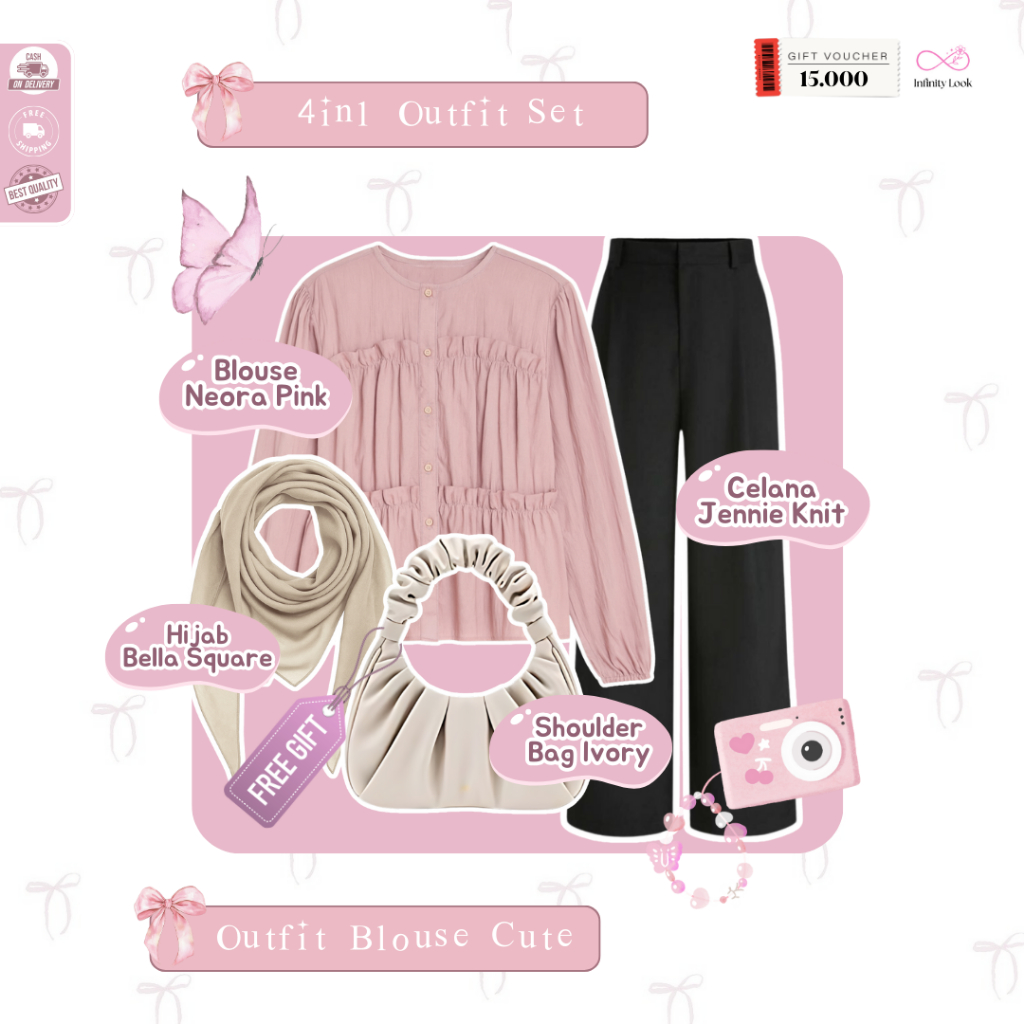 One Set Korean Style Hijab ( Hijab + Siera Blouse + Cekana Knit ) Ootd 1 Set Wanita Kekinian- LP 141