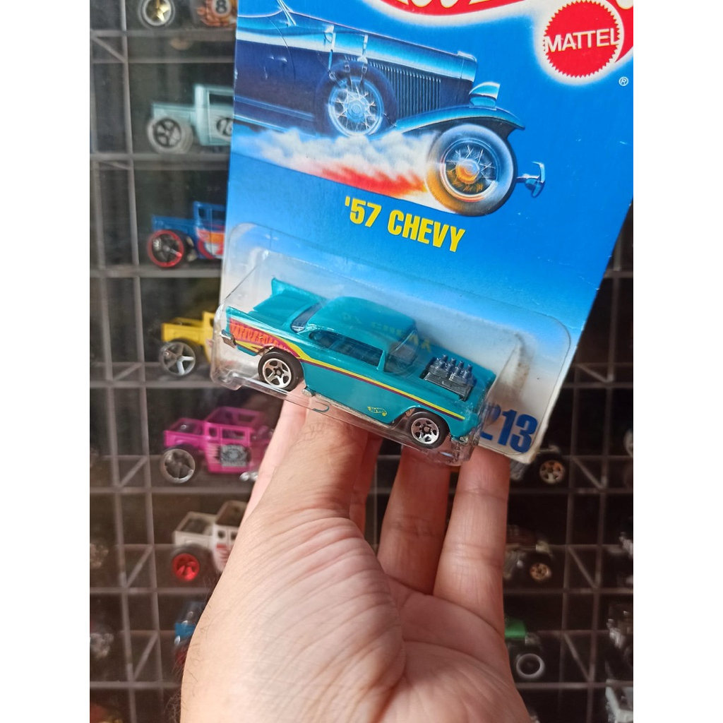 Hot Wheels Vintage 57 Chevy Exposed Engine Rilis Tahun 1993 Teal Hijau Blue Card Toy Diecast Mobil Klasik Real Car RARE LANGKA Original