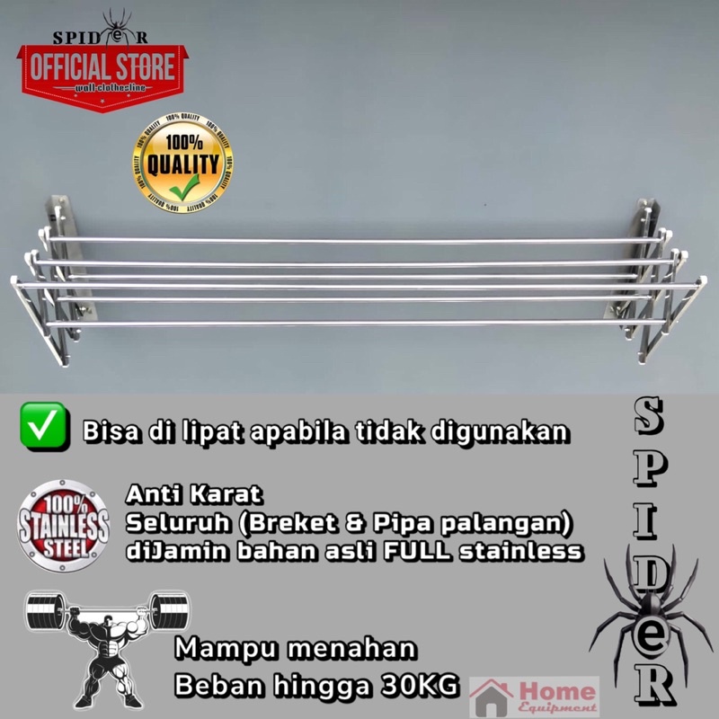 JEMURAN BAJU DINDING SPIDER ECONOMIS ASLI STAINLESS STEEL KOKOH KUAT 3,4,5,6 & 7 GALANG ANTI KARAT
