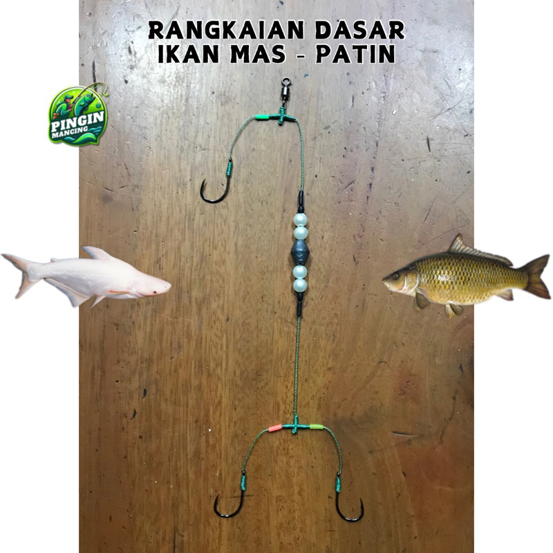 Rangkaian Pancing Ikan Mas Patin Dasaran Glosoran Benang PE 3 Mata Kail Dengan Pemberat