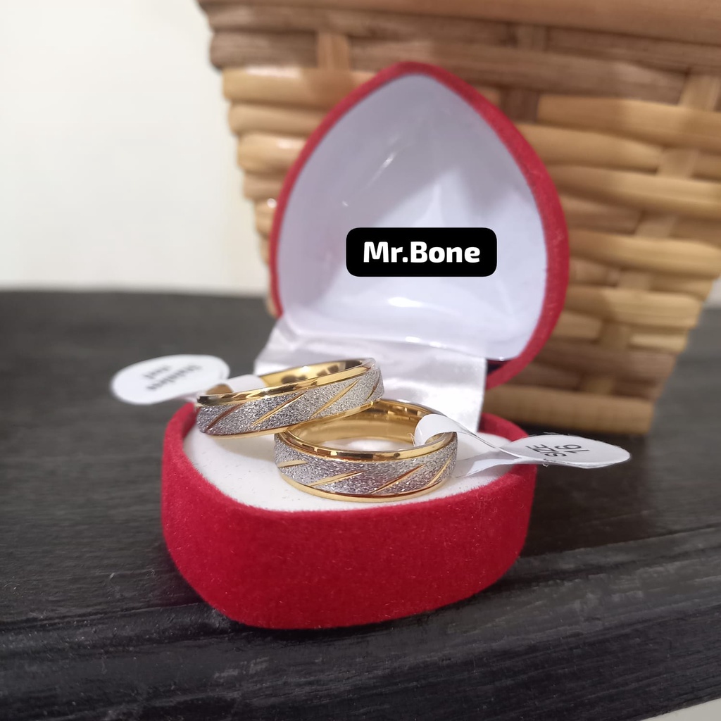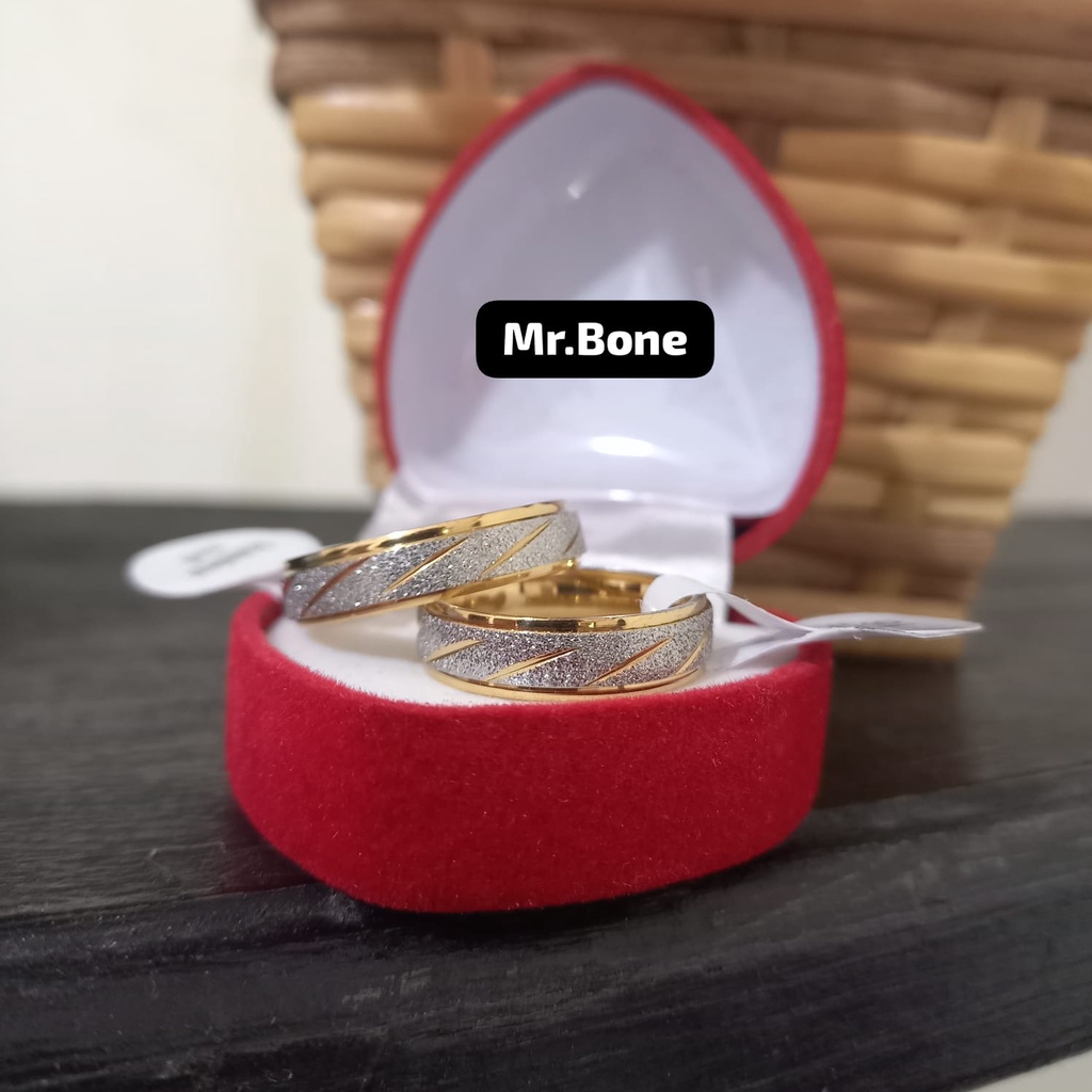 Cincin Kawin Suami Istri Sepasang Cincin Couple Titanium Anti Karat Selamanya Free Box Love