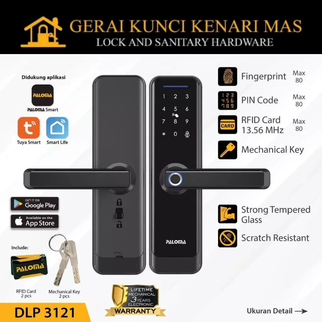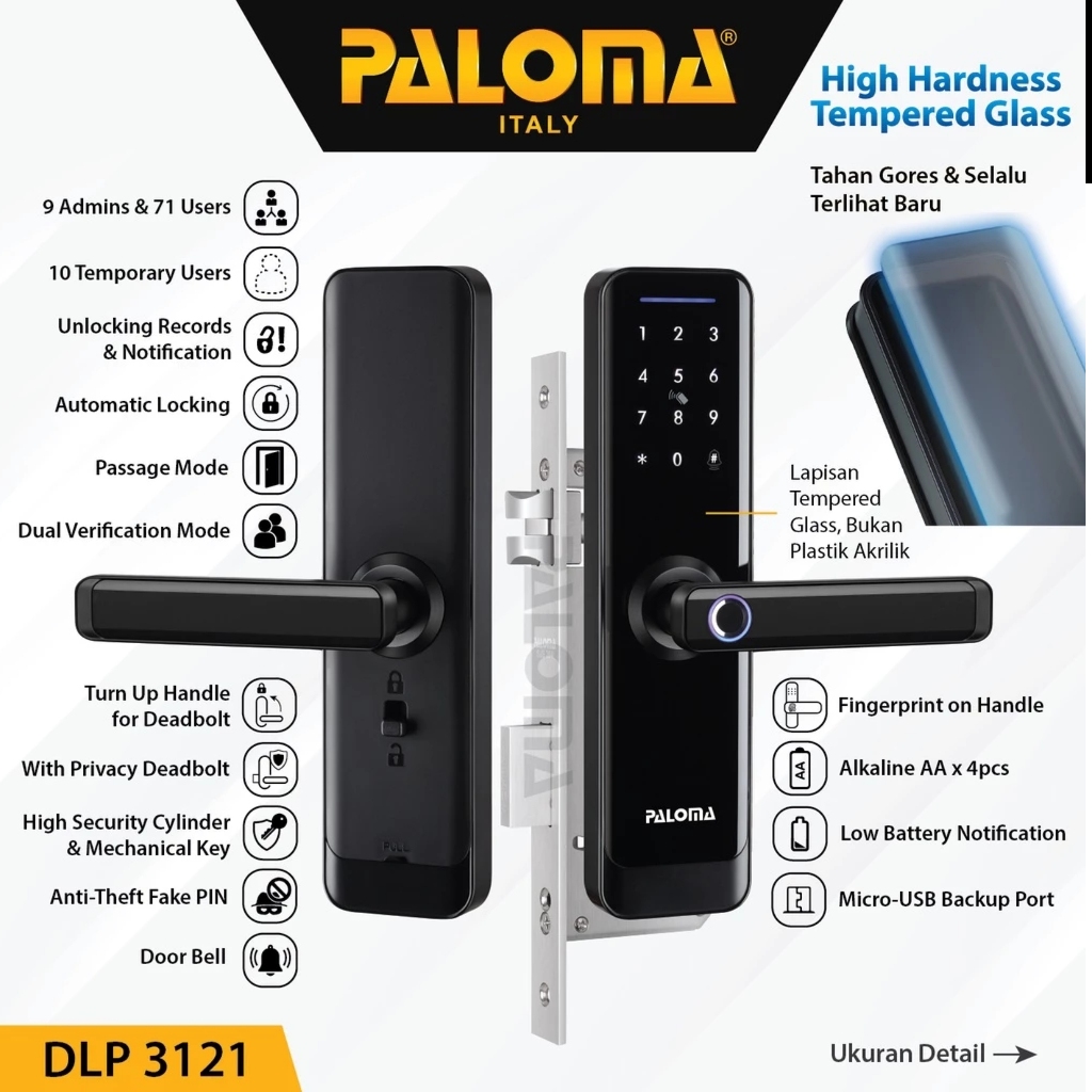 PALOMA DLP 3121 Digital Lock Smart Home Kunci Pintu Otomatis Fingerprint WiFi RFID Card Pin Code