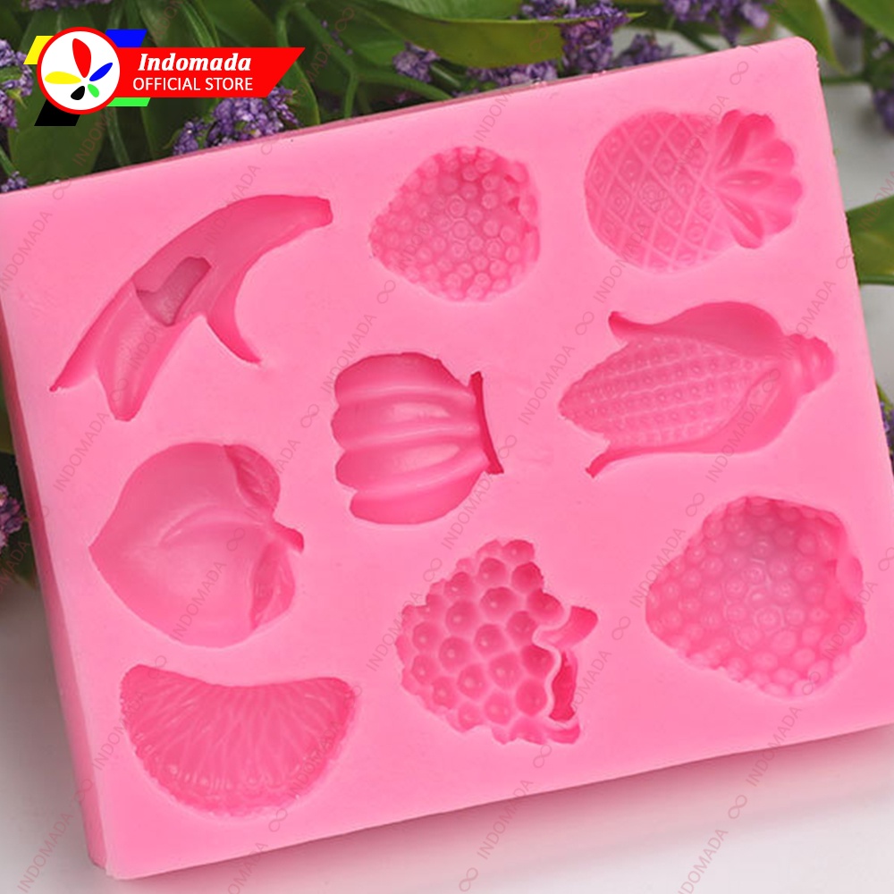 Indomada Cetakan Silikon Fondant 9 Buah Nanas Stroberi Pisang Persik Anggur Jeruk Jagung Cokelat Coklat Puding Resin Strawberry Grape Banana Fruits Silicone Mold Dekorasi Kue Kering