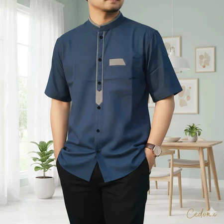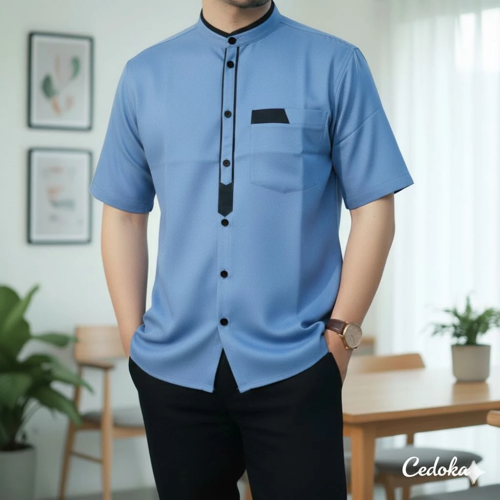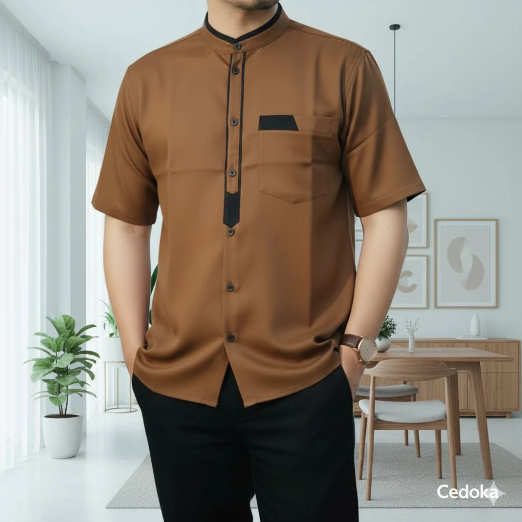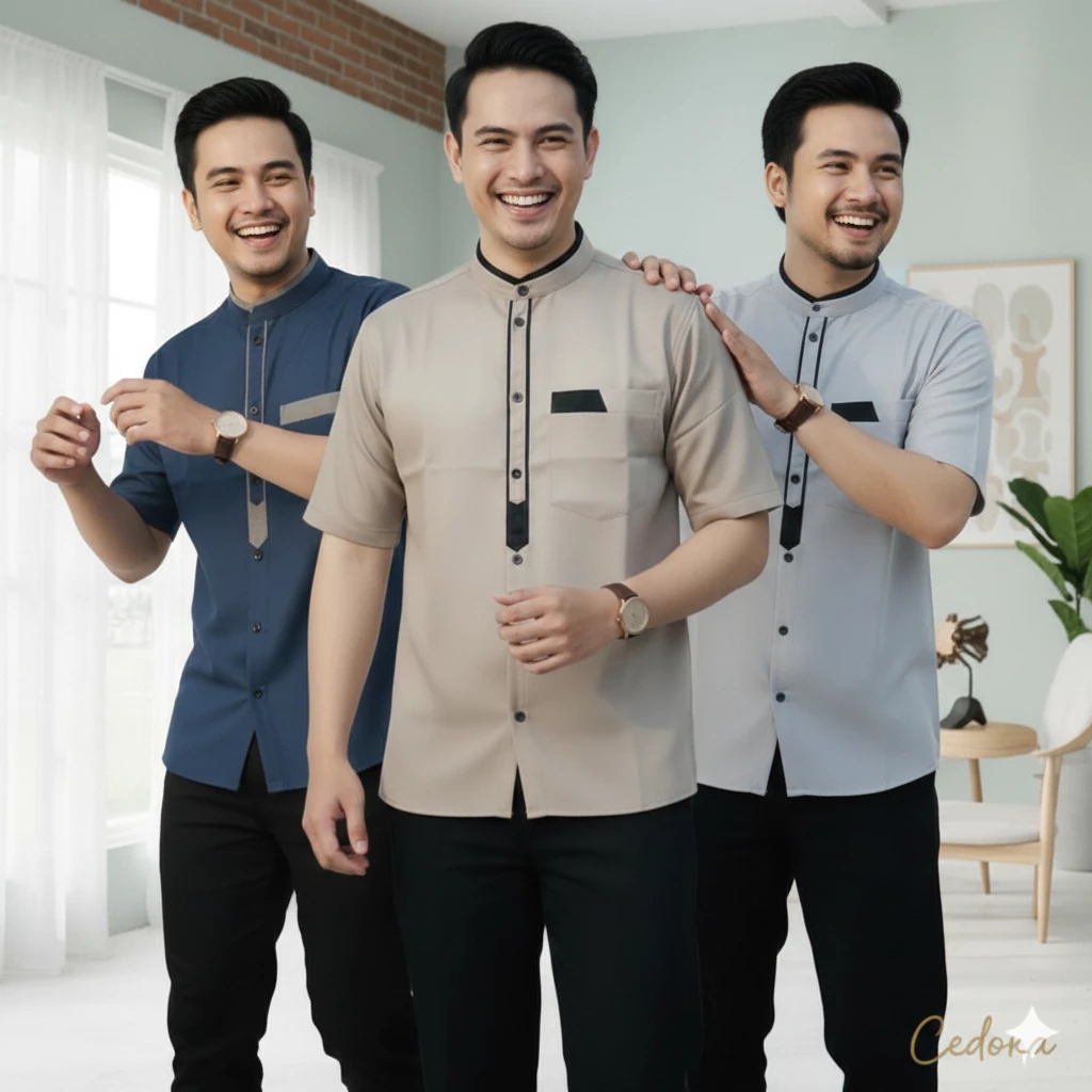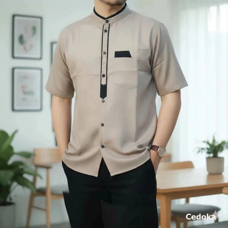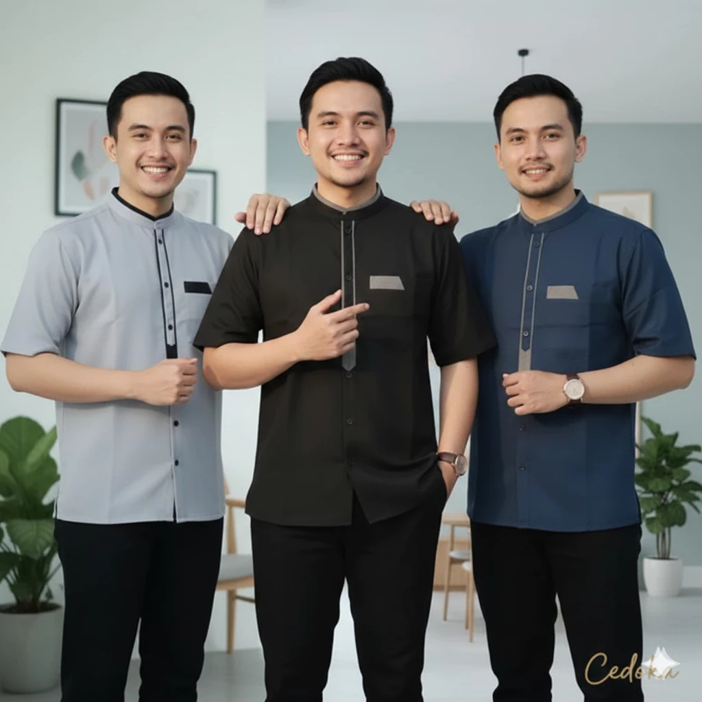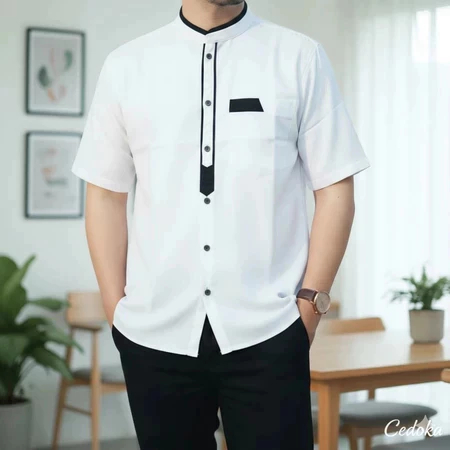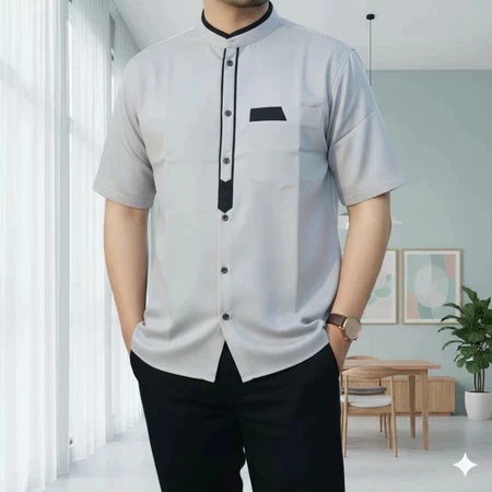 Kemeja Koko Pria Dewasa Lengan Pendek Mewah Terbaru Lebaran 2026 Putih Polos Abu Premium Nyaman Adem