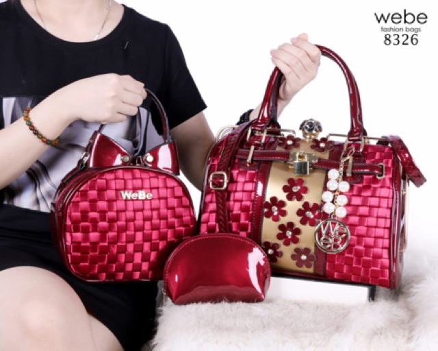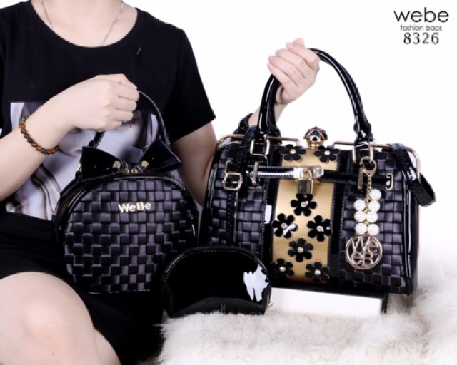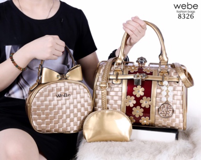 TAS WEBE 8326# Tiara FLORA Luxe Behel 3in1 Polyster Vs Glossy Leather Hardware Gold (8326)