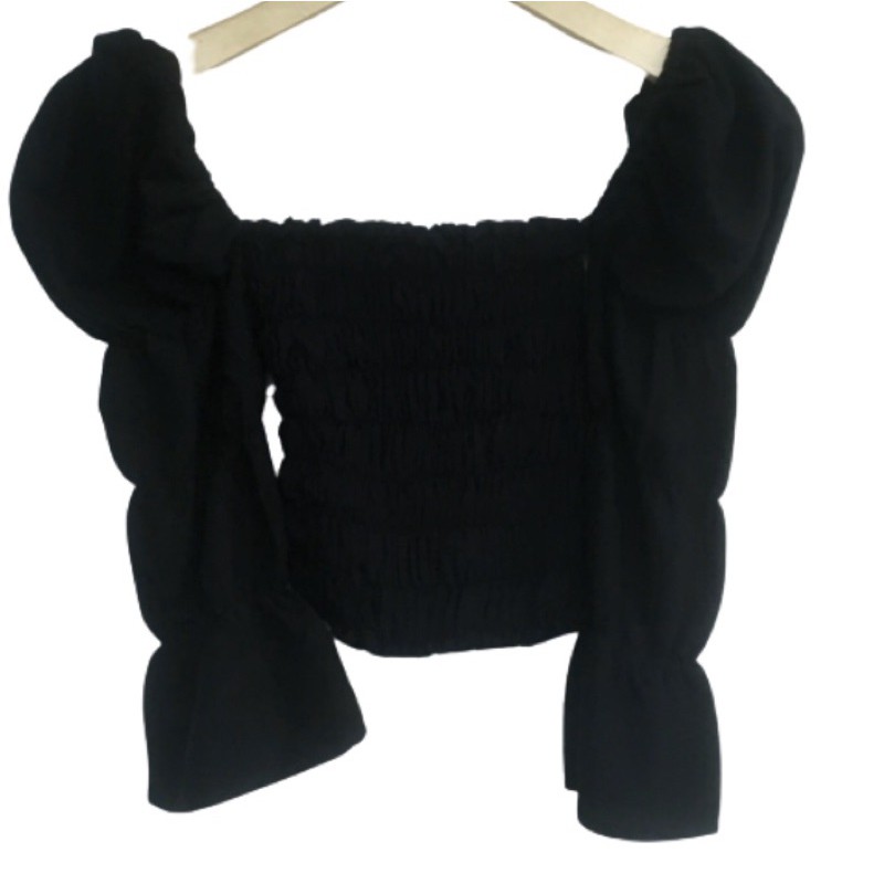 Baju sabrina hitam crop top/fashion hits/ baju hitam/ baju tiktok
