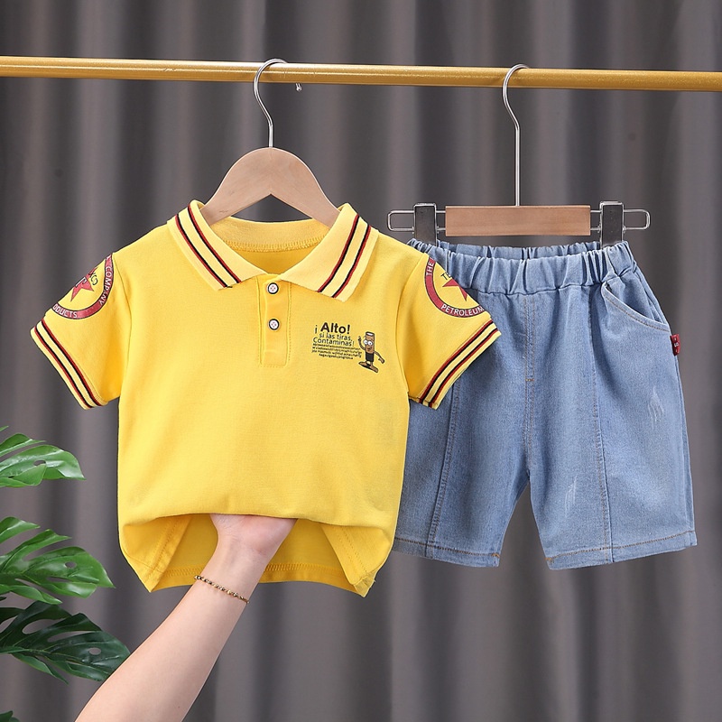 Setelan Kaos Polo Kerah Anak Cowok Umur 1 2 3 4 5 Tahun Lengan Pendek Set Kaus Anak2 Balita Baby Boy
