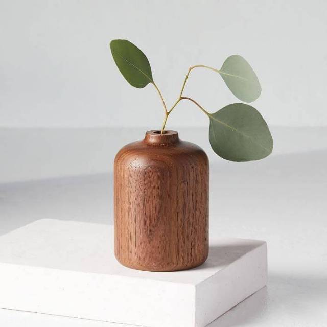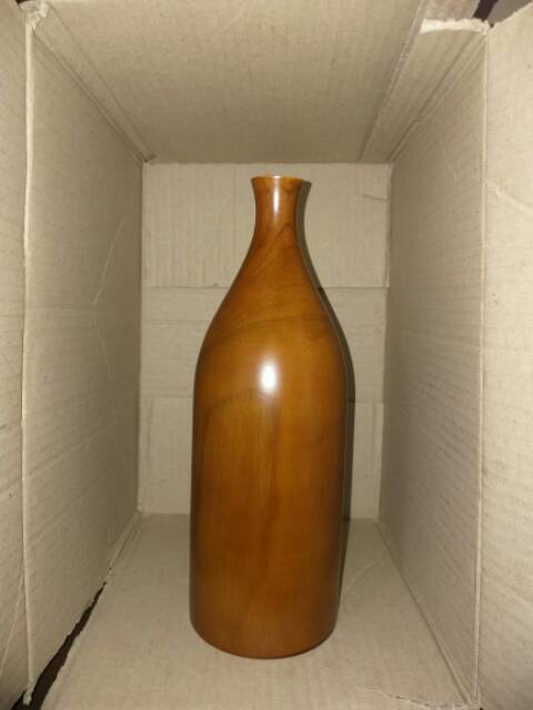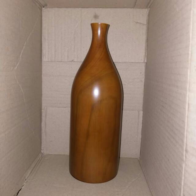 Vas bunga kayu Jati model Botol