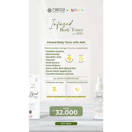 INFUSED BODY TONER RAECCA BOBEBI / TONER BADAN / TONER TUBUH / GLOWING TONER