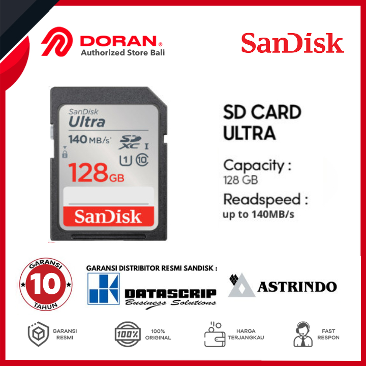 SanDisk SD Card 128GB Ultra UHS-I Class 10 up to 140Mbps Memori Kamera - Garansi Resmi 10 Tahun