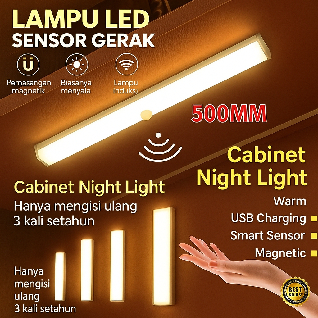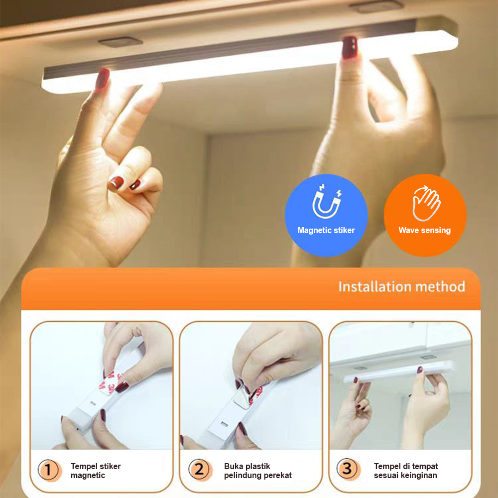 Lampu LED Sensor Gerak Tempel Magnetic | Lampu Stick Lemari Tidur Belajar Portable USB Rechargeable – 10cm/20cm/30cm/50cm
