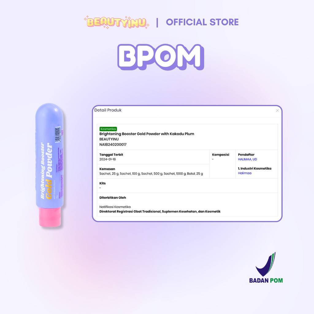 Beautyinu Brightening Booster Gold Powder 25gr - Promo Pemutih Badan BPOM | Body Booster