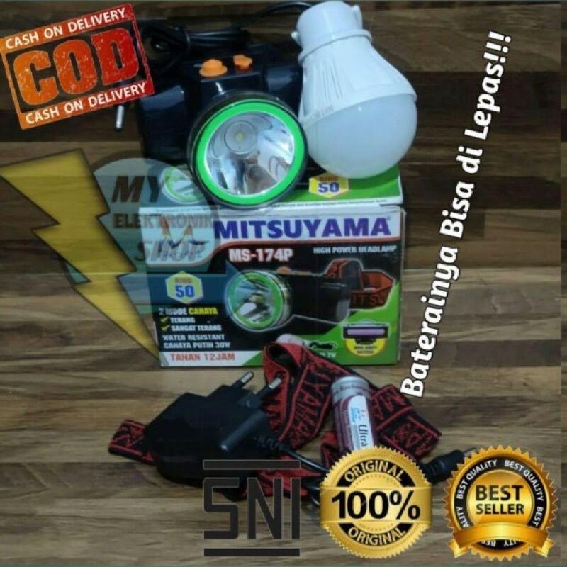 Senter kepala 30w baterai lepas