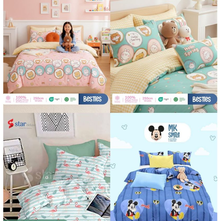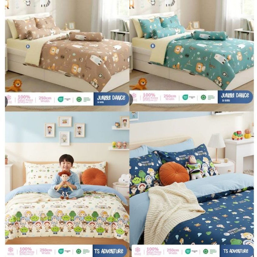Sprei Katun Premium Motif Anak | Anti Geser | Ukuran Single–King | Lembut & Adem