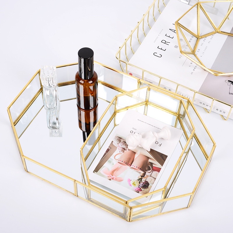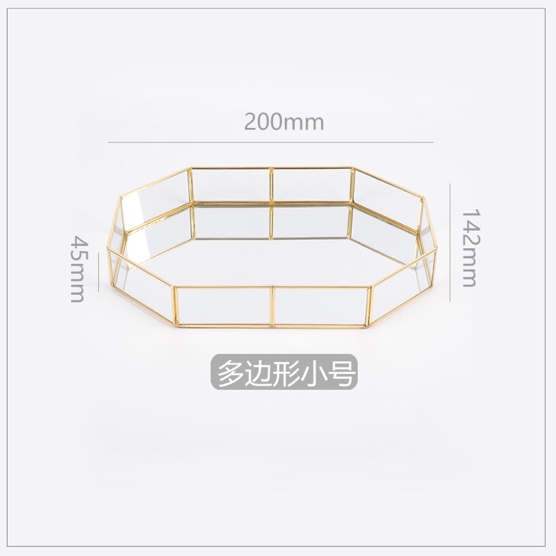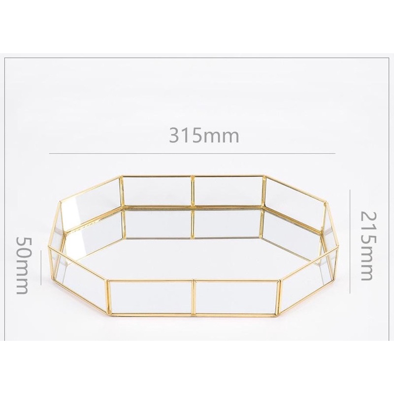 Nordic Terrarium Gold Mirror Glass Tray / Baki Kaca Emas / Dekor Rumah Pajangan meja 8 SISI tempat asesoris ukuran BESAR ala INST