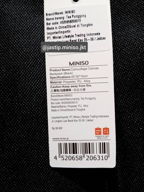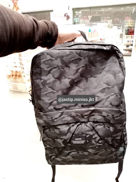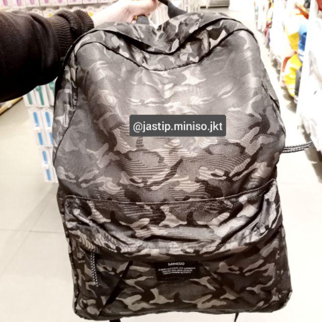 MINISO 🆕 - TAS RANSEL KAMUFLASE KANVAS (45x30x15cm)