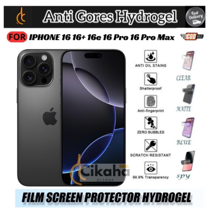 Anti Gores Hydrogel Iphone 16 16+ 16e 16Pro 16 Pro Max Bening Clear Blue Matte Spy Privacy Pelindung Layar