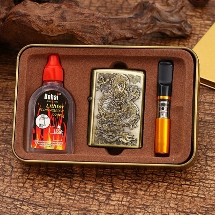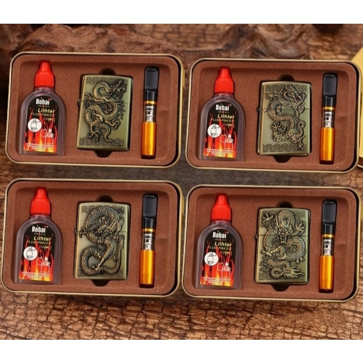 BISA COD! korek motif naga timbul + minyak + pipa motif minyak komplit mancis