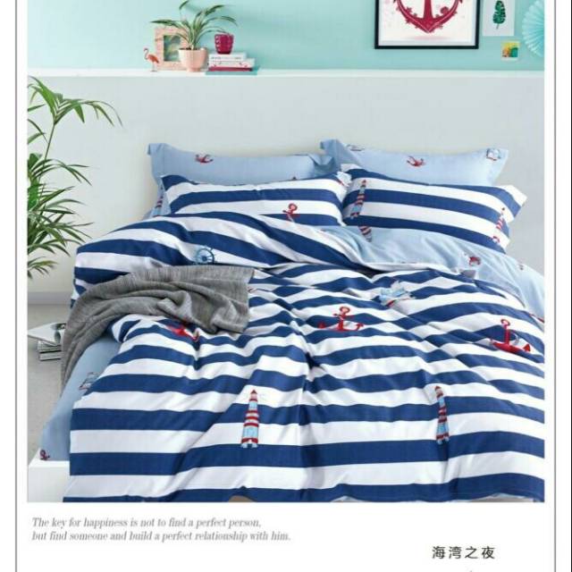 Sprei katun jepang | garis putih biru | ready stok