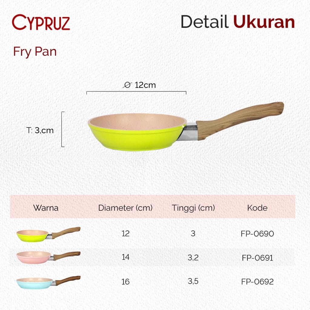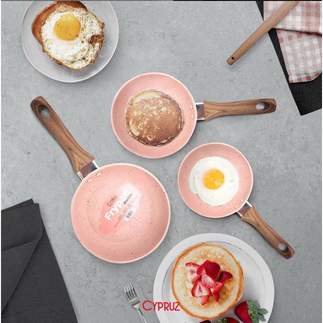 KH Cypruz Frypan Mini 12cm 14cm 16cm Fry Pan Wajan Penggorengan SOXOO Marble Coating Teflon Anti Lengket
