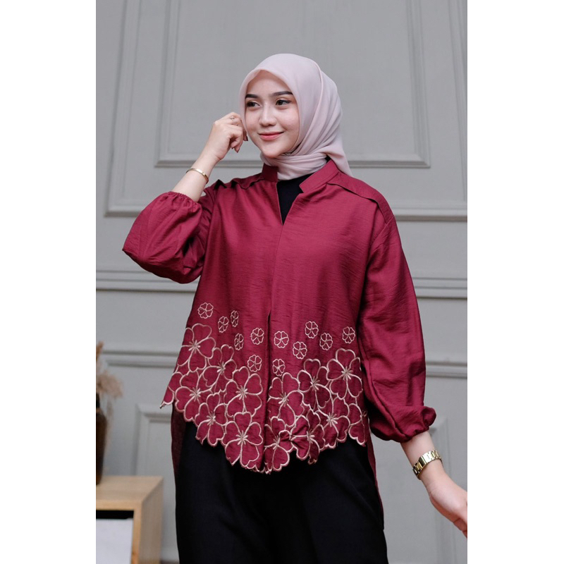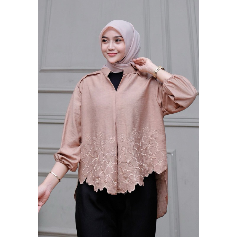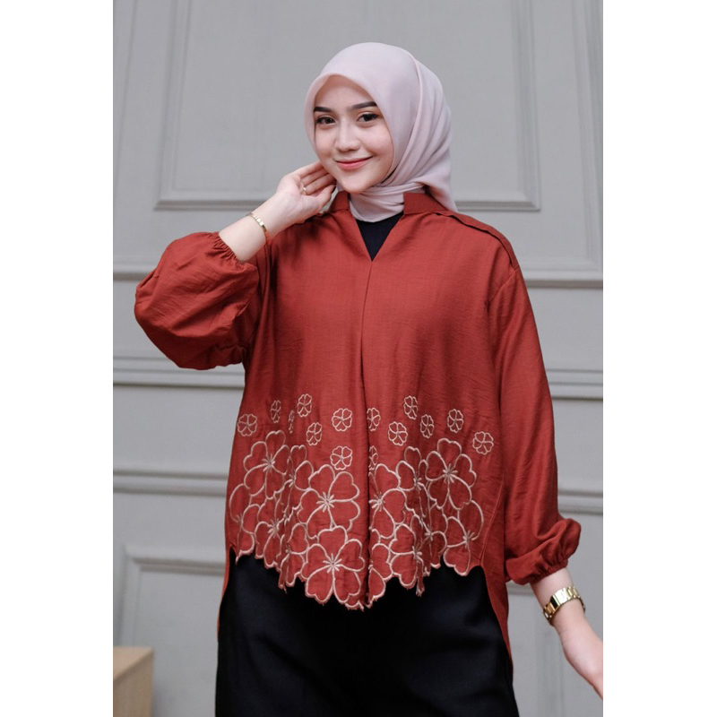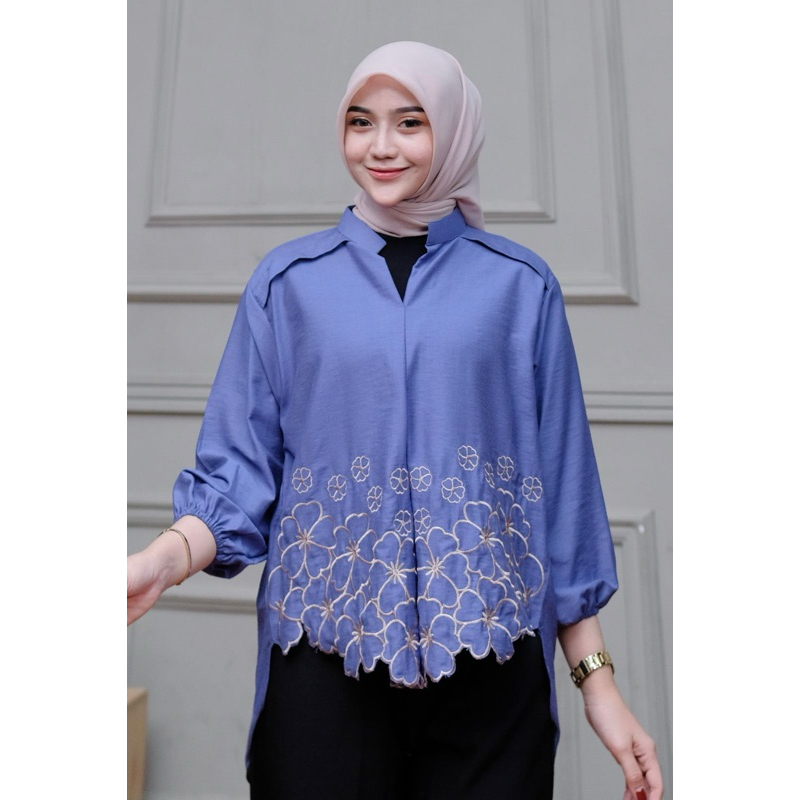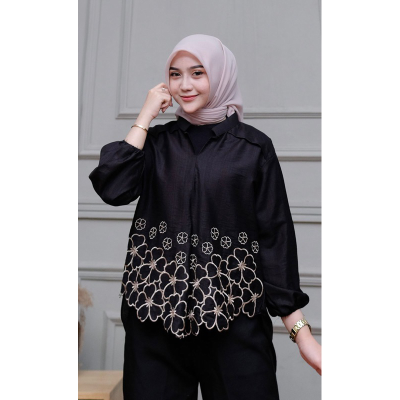 Kemeja Bordir Laura // Atasan Wanita pure Linen