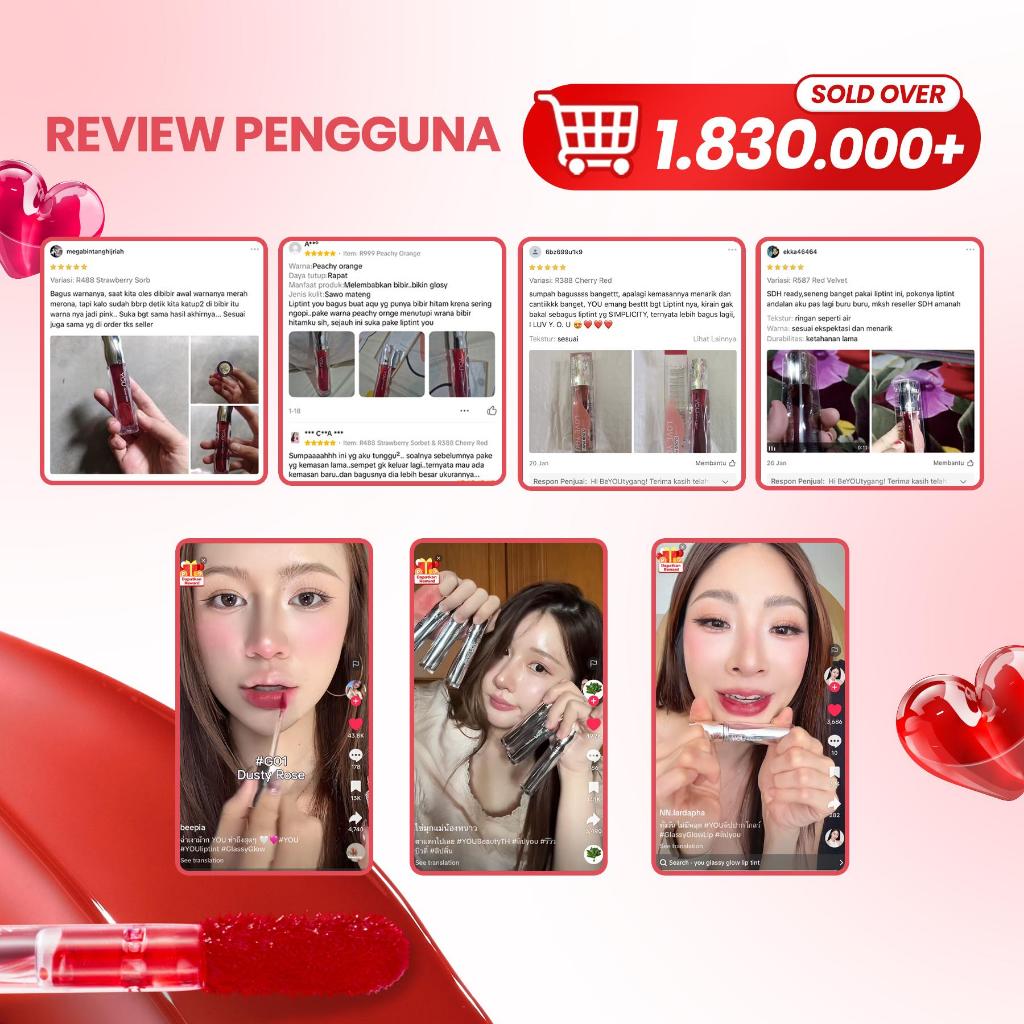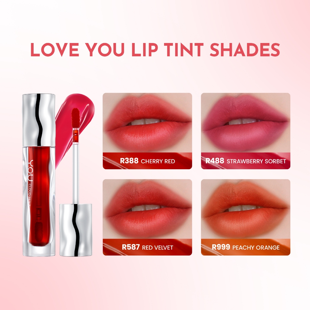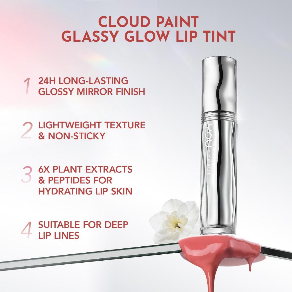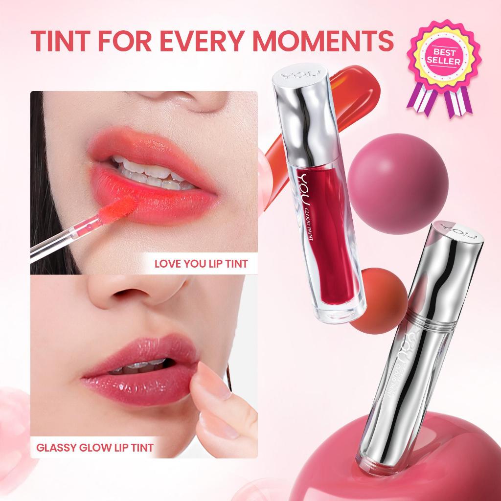 [HARGA TERMURAH RAMADAN] YOU Cloud Paint Lip Collection 4 Finish: Matte Lip Cream, Glassy Glow Lip Tint, Watery Love You Tint & Airy Velvet Tint | 4in1 Lip Product Tahan Lama 24 H Transferproof Anti-Geser High Stain High Pigmented