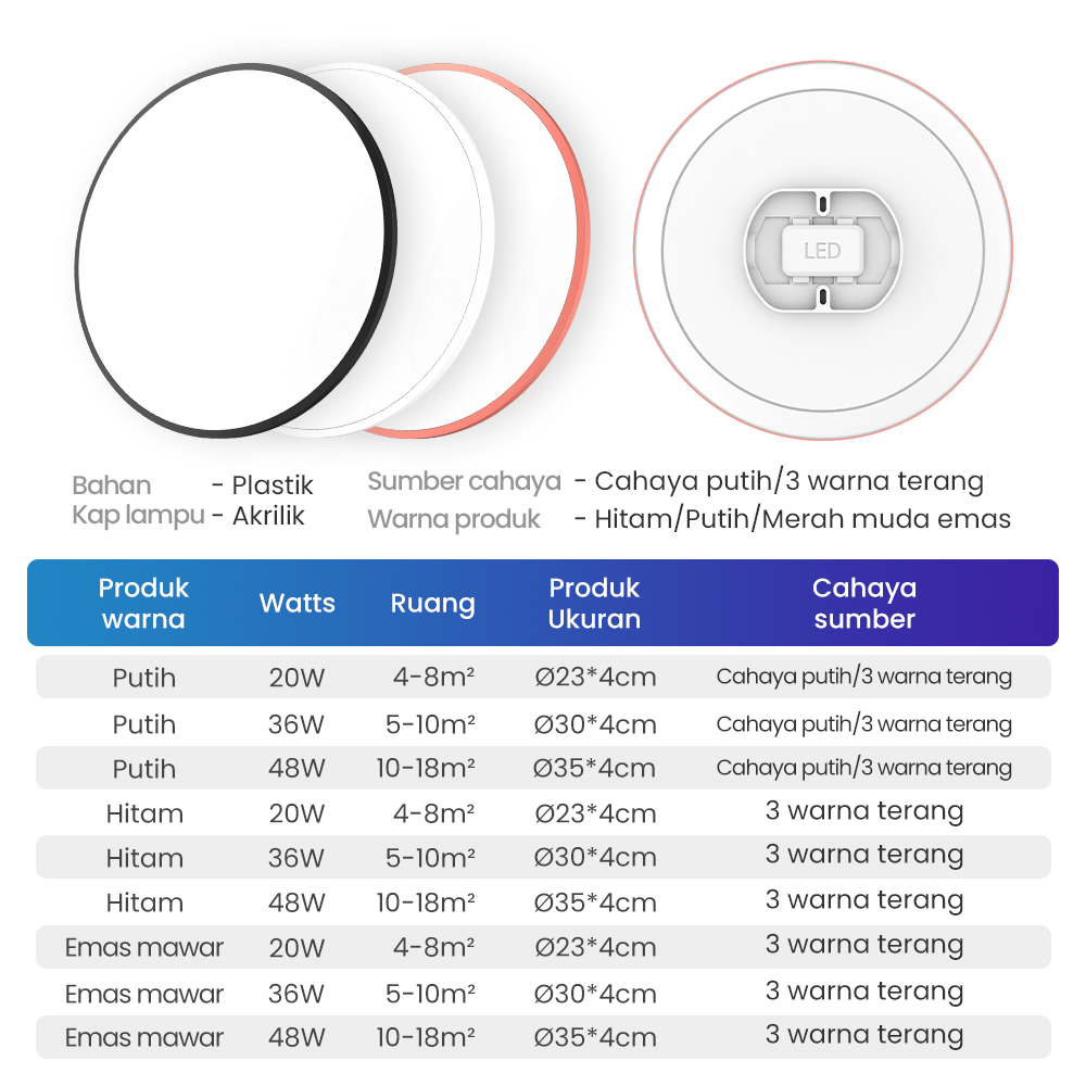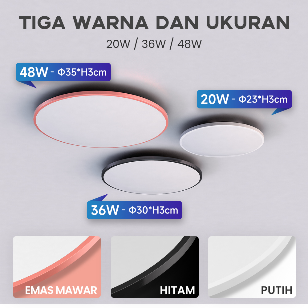 HAN RIVER 3 Warna Lampu Plafon Minimalis 48W 36W 20W Lampu LED Kamar Permukaan Dipasang Lampu Rumah