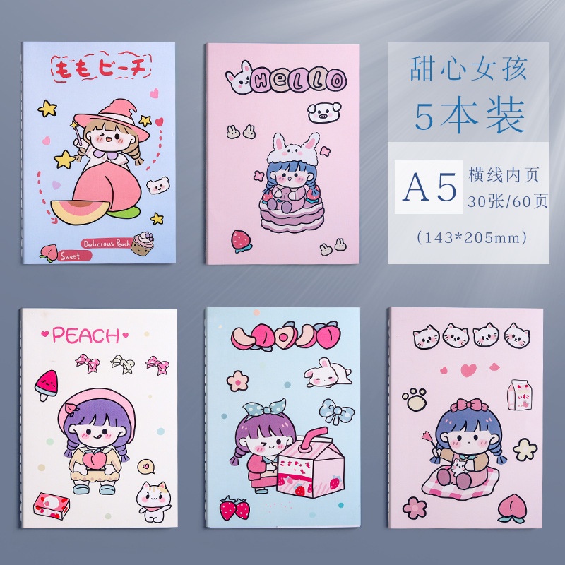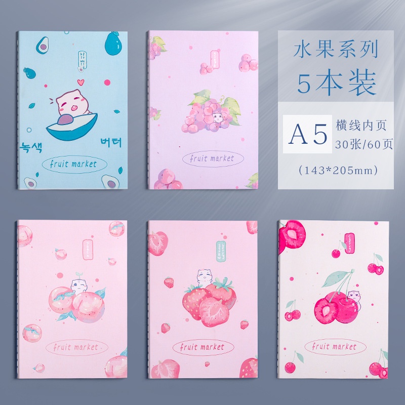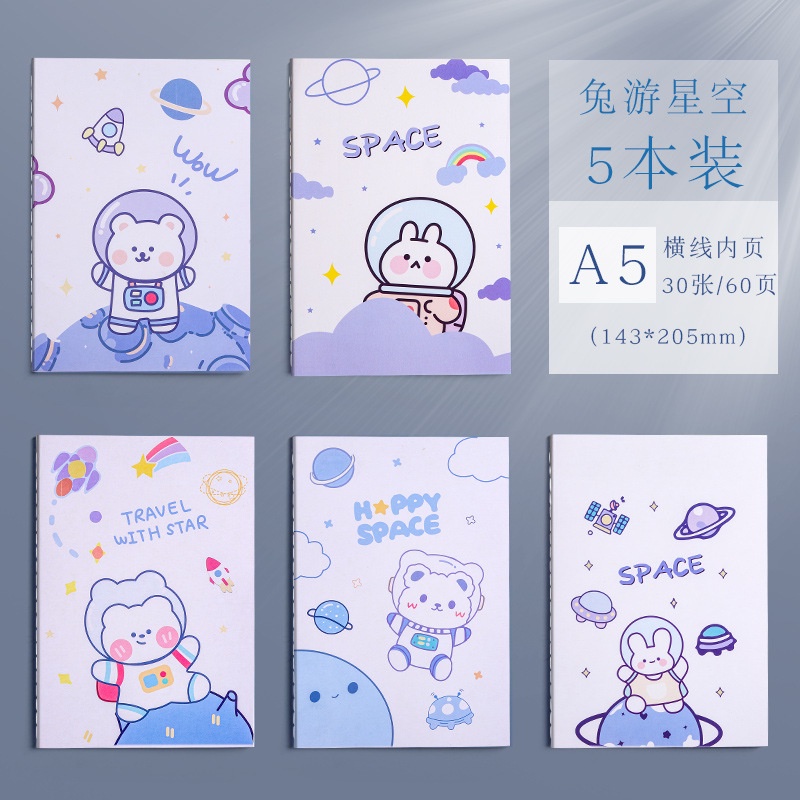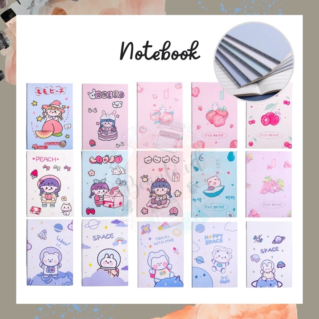 Buku Tulis Garis Lucu Kertas A5 Untuk Anak Sekolah Les Buku Catatan Bergaris Pelajaran Desain Cover Beruang Astronaut Cute Girl Buah Strawberry Notebook Jahitan Benang Buku Tulis Pelajar