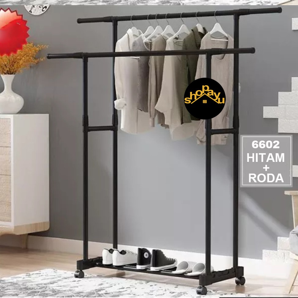 Stand hanger double sisi rak serbaguna dgn 4 roda