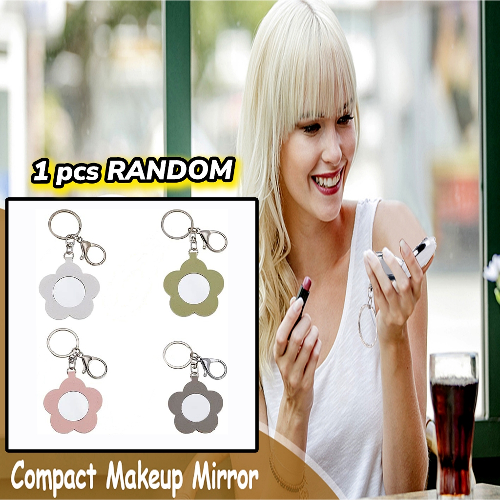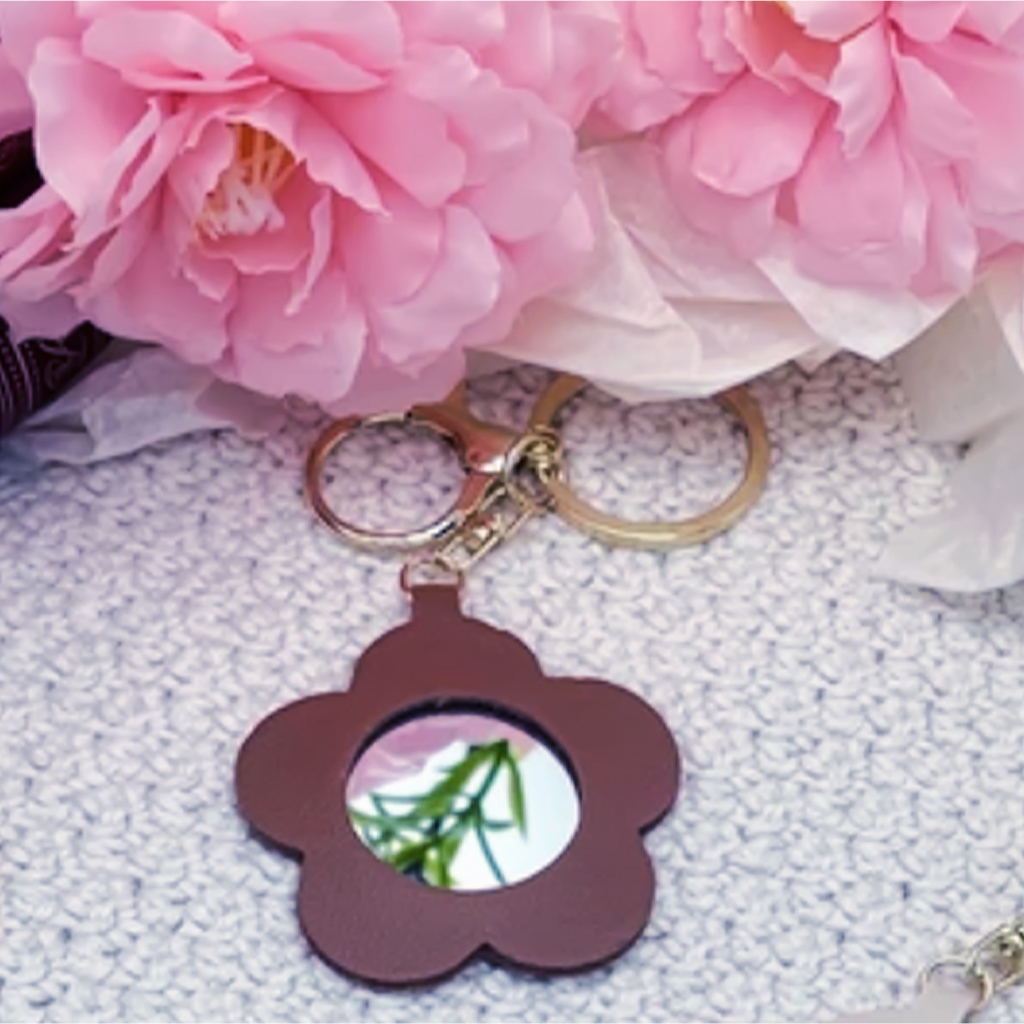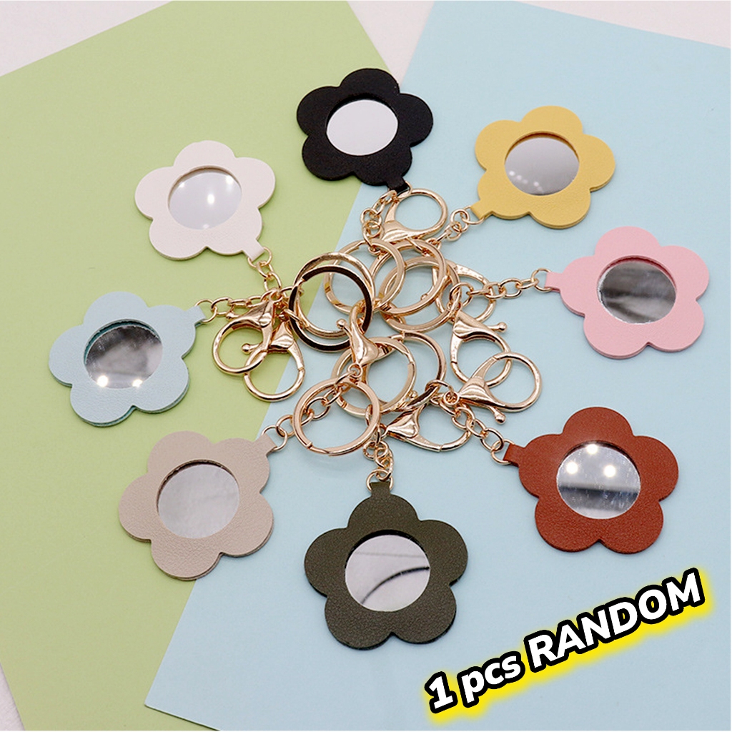 Gantungan Kunci Ganci Kaca Cermin Makeup Rias Mobil Motor Tas Souvenir Vintage Aesthetic Motif Bunga Flower Mirror Ring Keychain