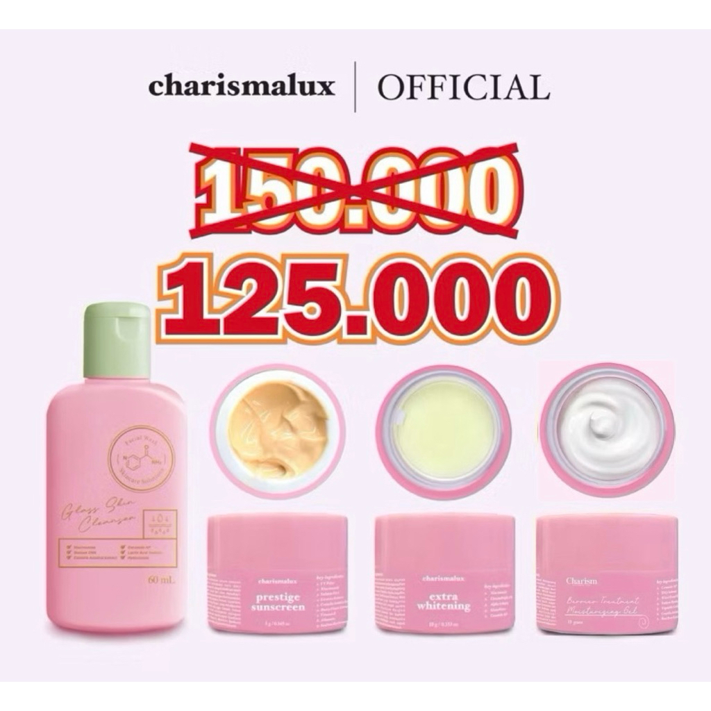 CHARISMALUX ORIGINAL PAKET PEMUTIH WAJAH BPOM PAKET GLOWING PAKET ACNE PAKET SUPER WHITENING