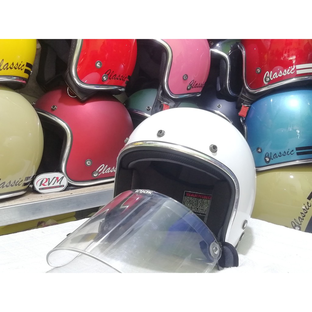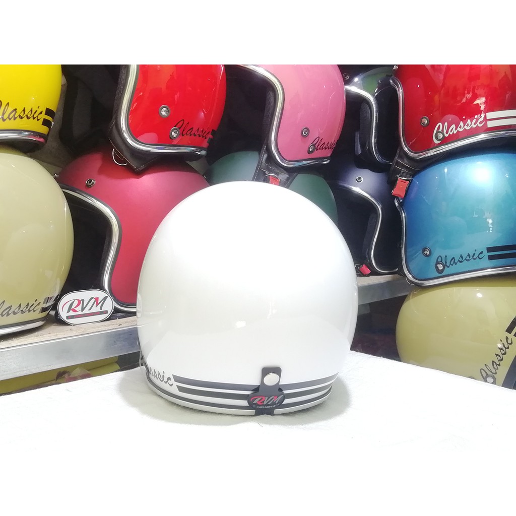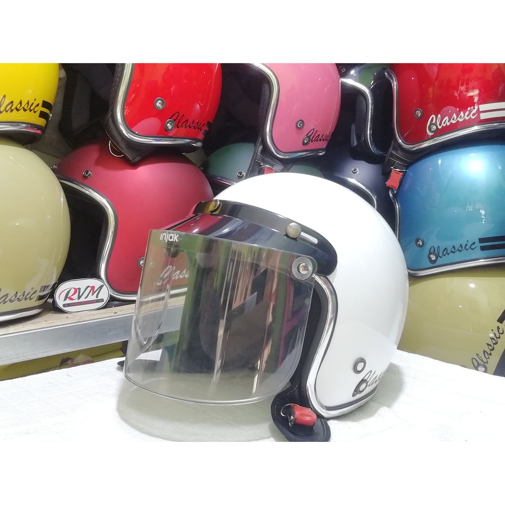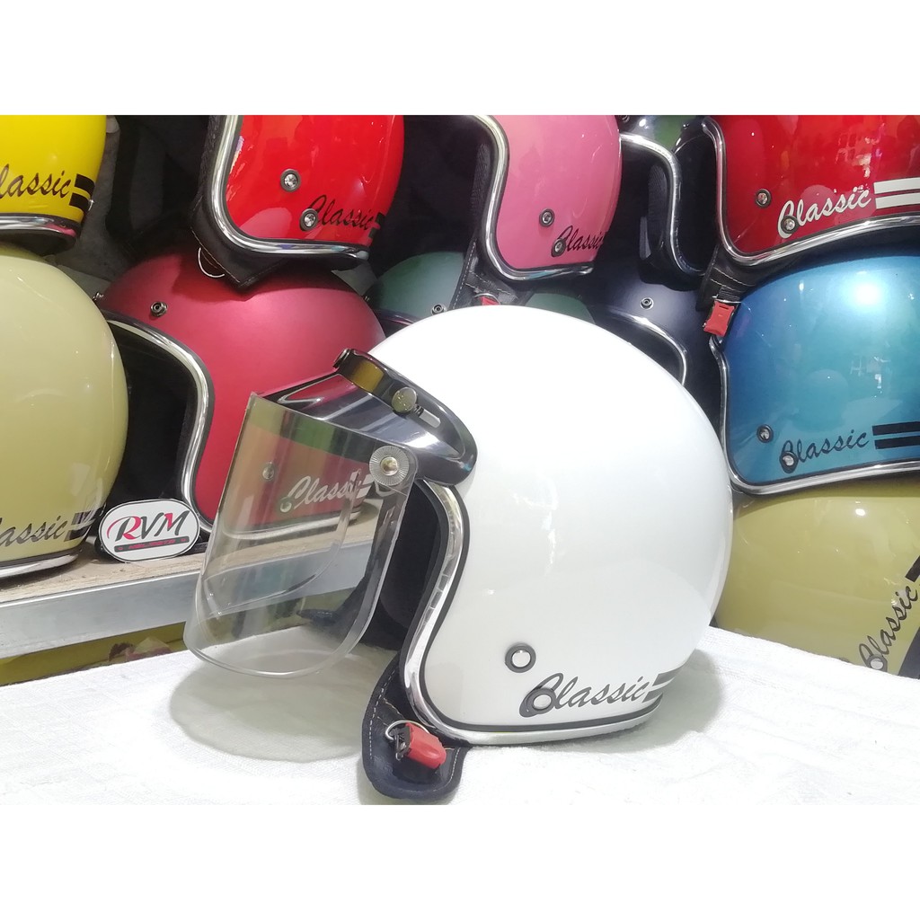 HELM BOGO CLASSIC LIST CHROME PUTIH KACA DATAR BENING