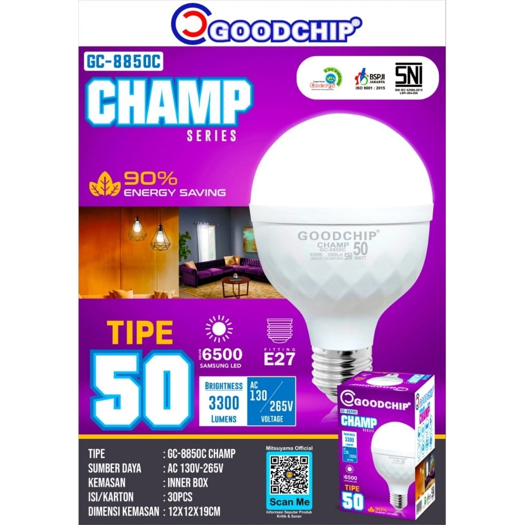 Lampu Bohlam GOODCHIP CHAMP SERIES 5w 10w 15w 20w 30w 40w 50w | 90% ENERGY SAVING