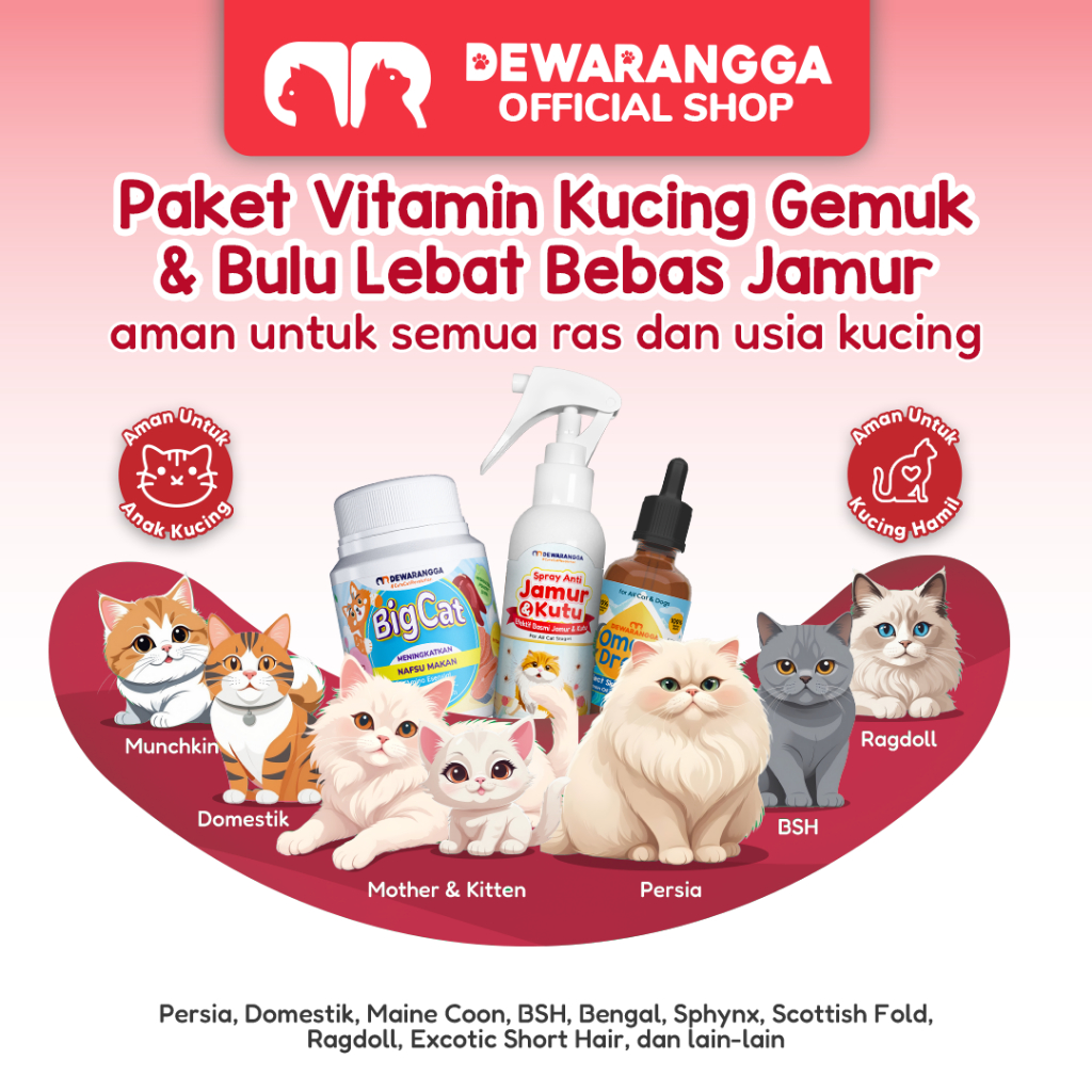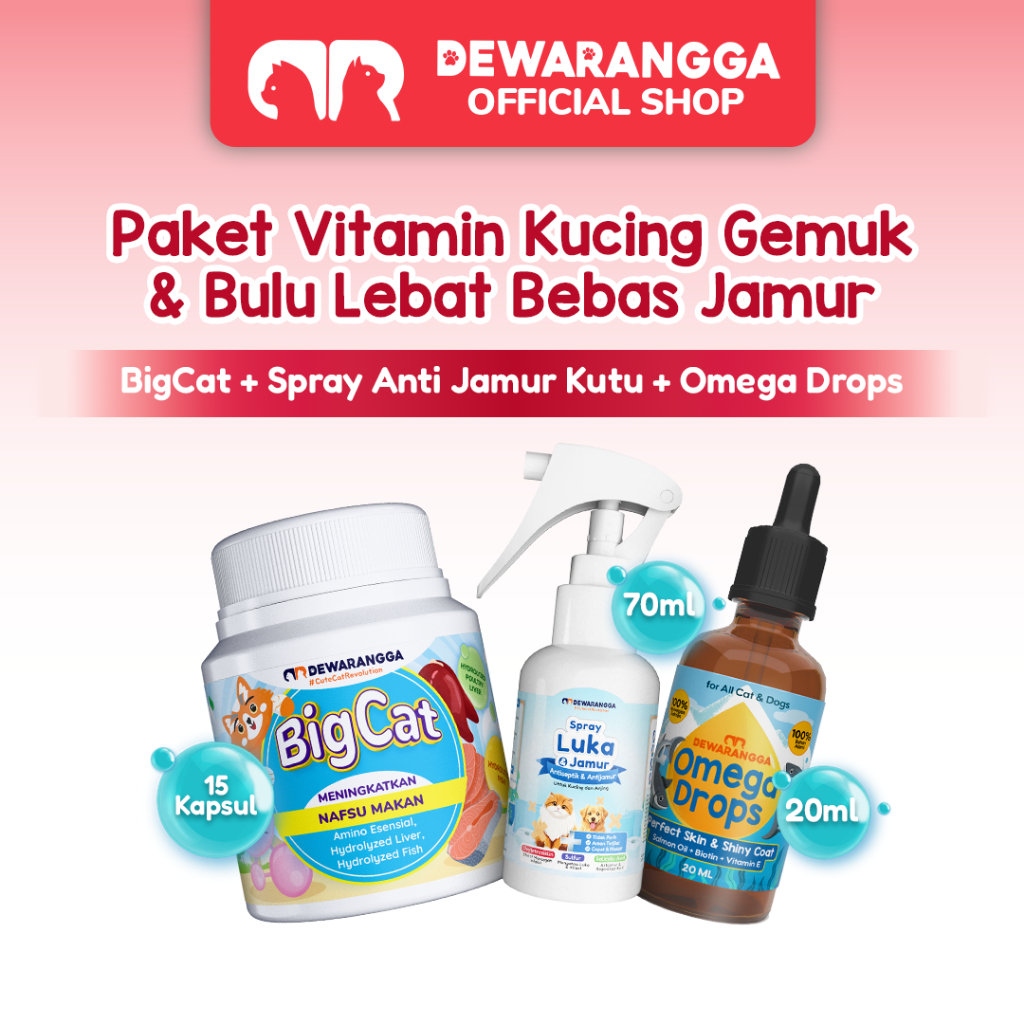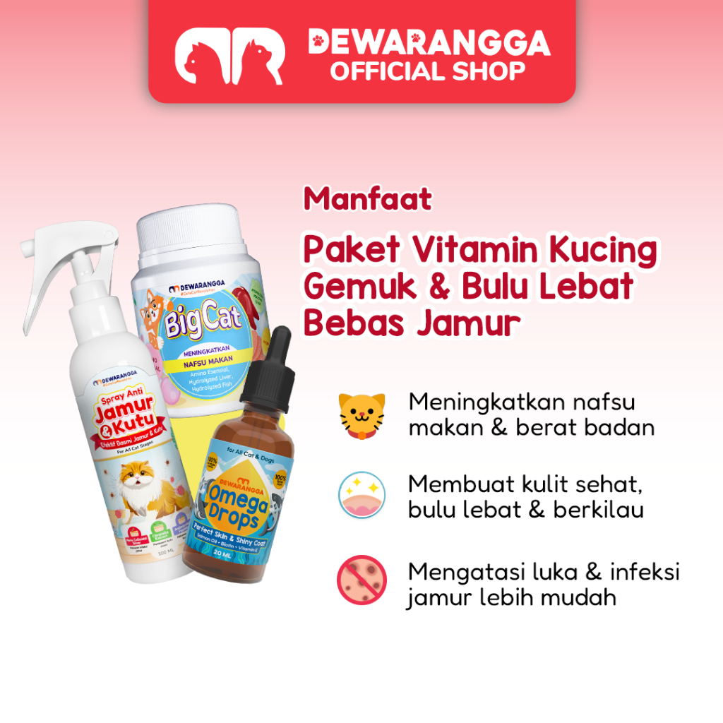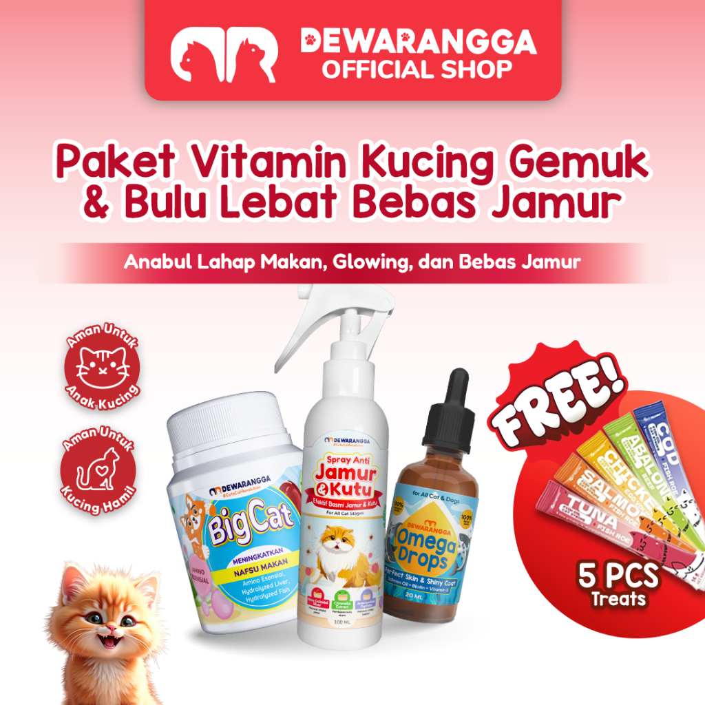 Dewarangga Paket Vitamin Kucing Gemuk dan Bulu Lebat Bebas Jamur - Vitamin Penggemuk Kucing dan Spray Anti Jamur Pelebat Bulu Kucing