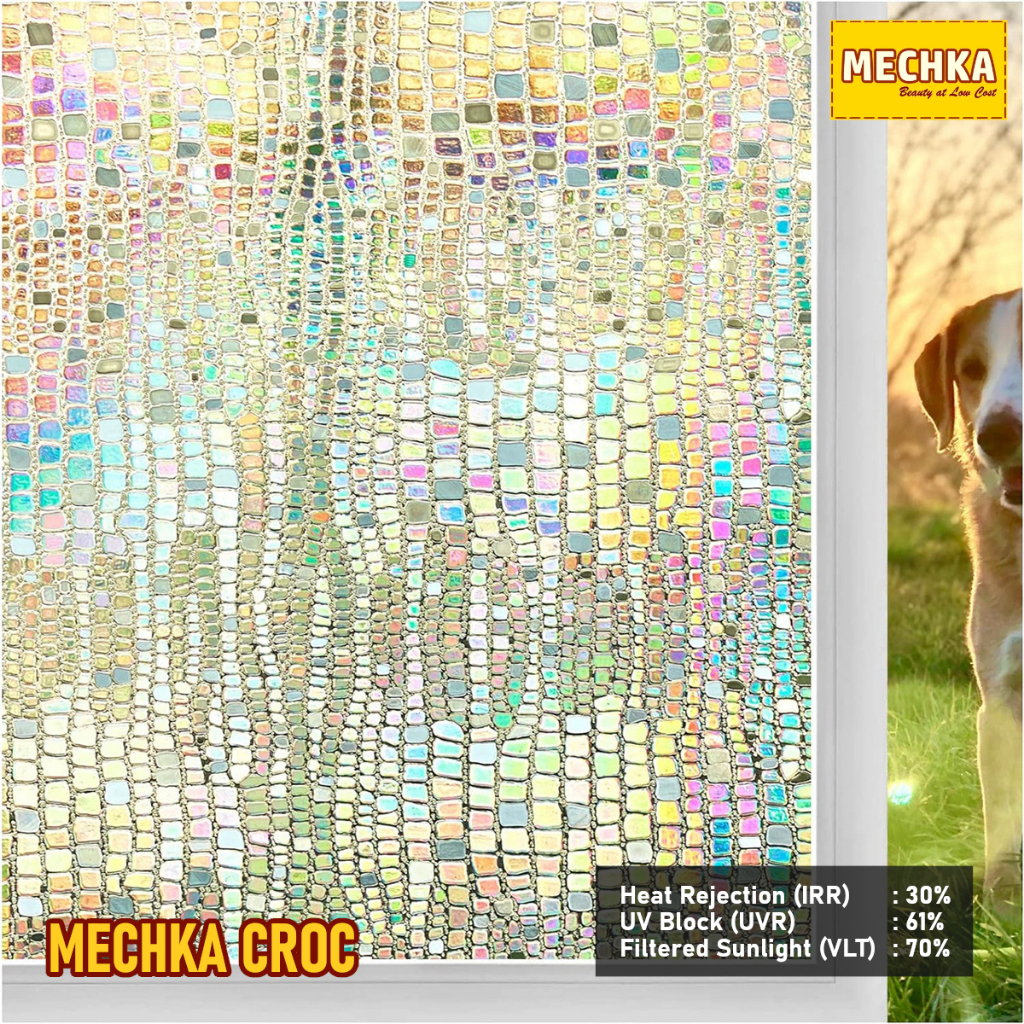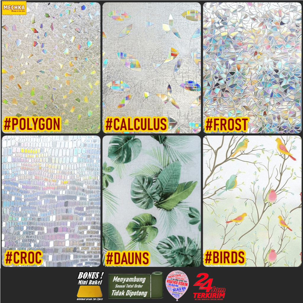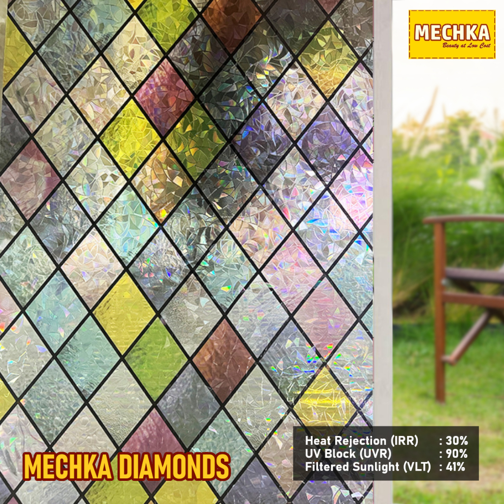 Mechka Sandblast Suncatcher /1m Sticker Stiker Wallpaper Kaca Warna Warni Hologram Pelangi SB3D-1M