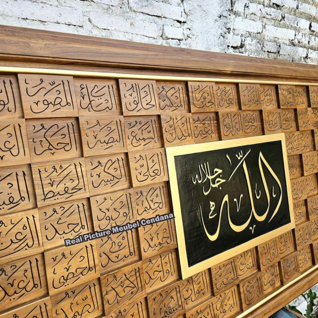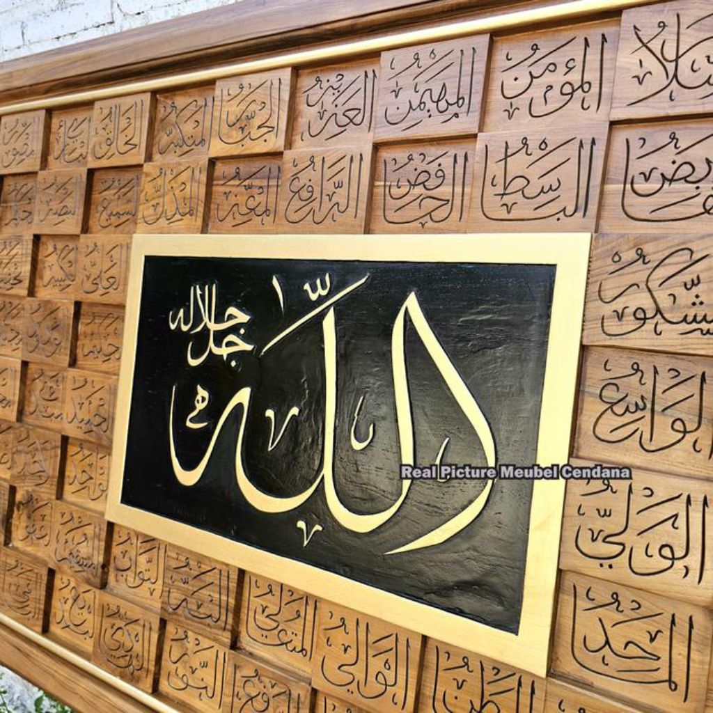 kaligrafi asmaul husna 2 x 1 meter kayu jati , kaligrafi hiasan dinding asmaul husna tp