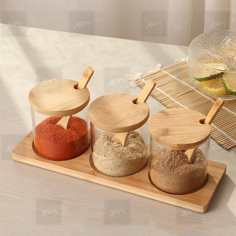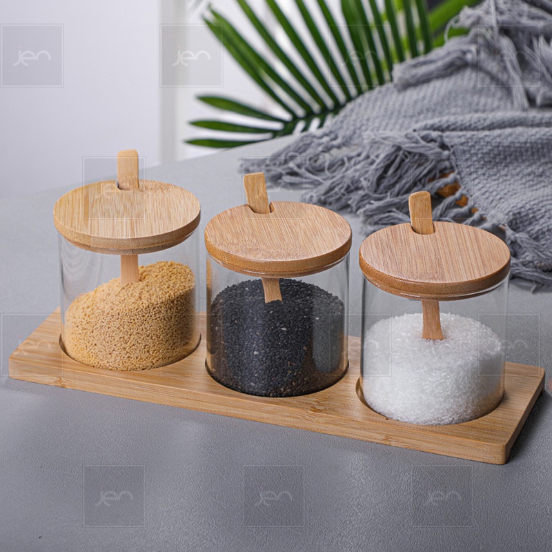 Tempat Bumbu Dapur Toples kaca Spice 3 in 1