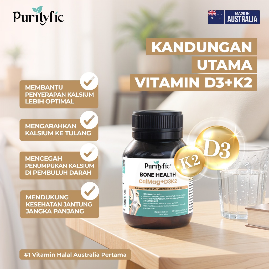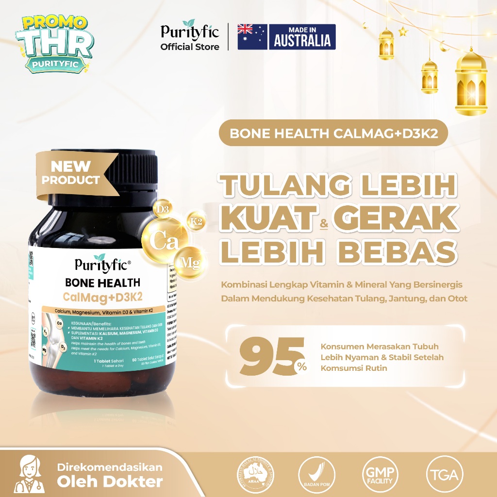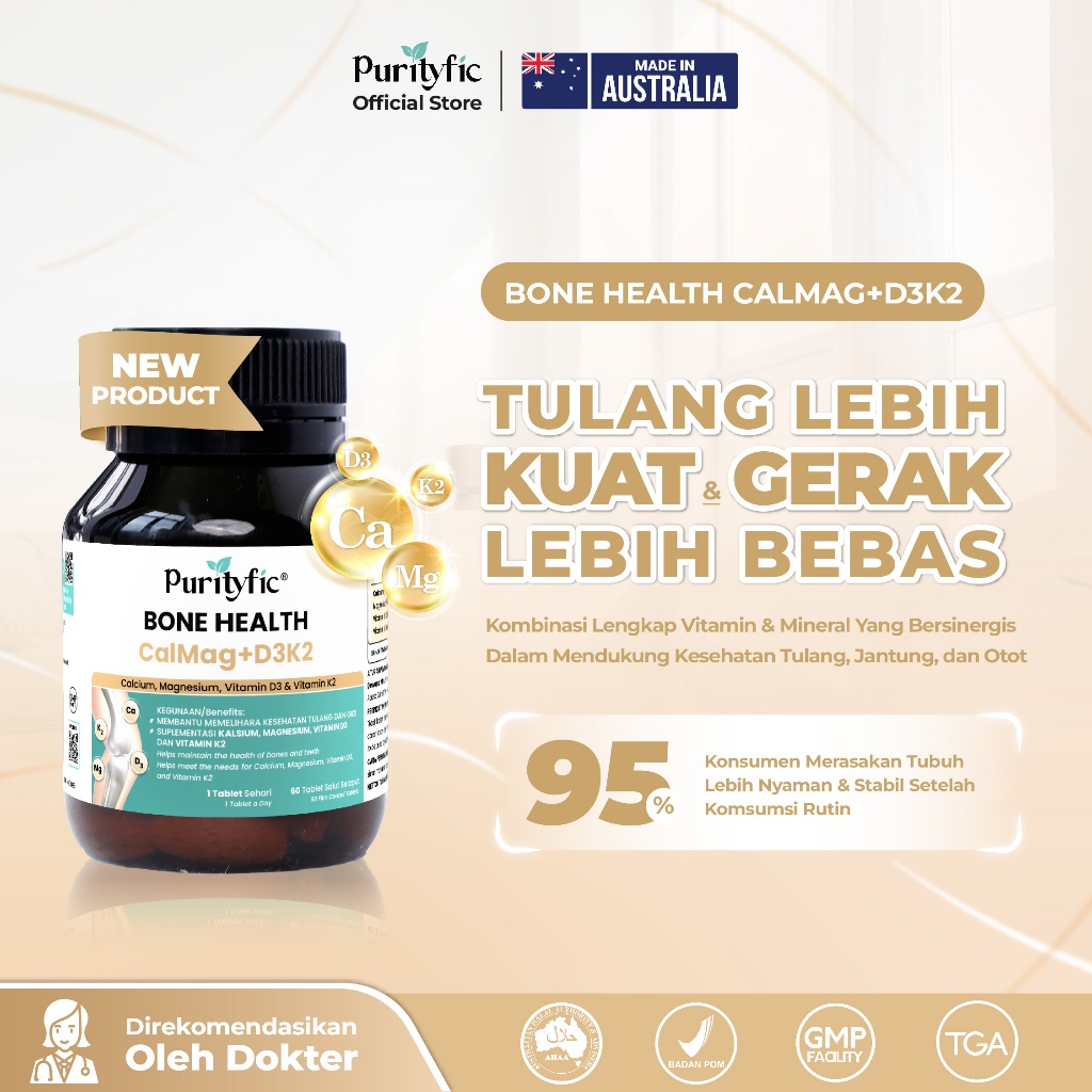 Purityfic Bone Health Calmag + D3K2 - Vitamin Kesehatan Tulang 60 Tablet