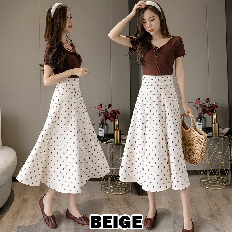 KARAKOREA 821 Polkadot Skirt/Maxi Skirt/Rok Panjang/Rok Korea Skirt