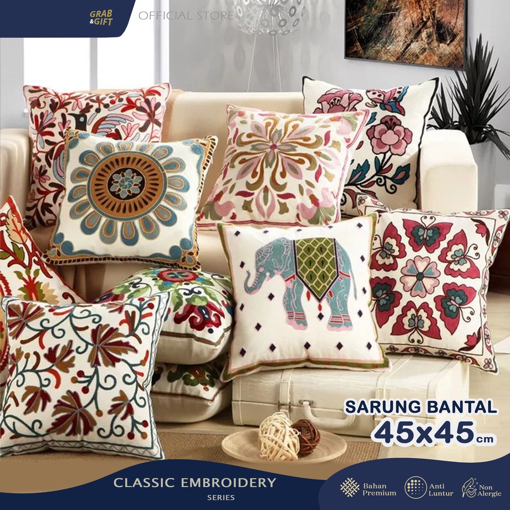 SARUNG Bantal Sofa Classic Embroidery Bordir Timbul 45x45 cm Cover Cushion Pillow Grabandgift