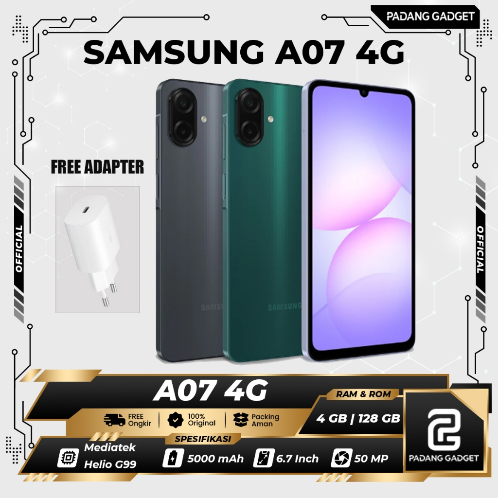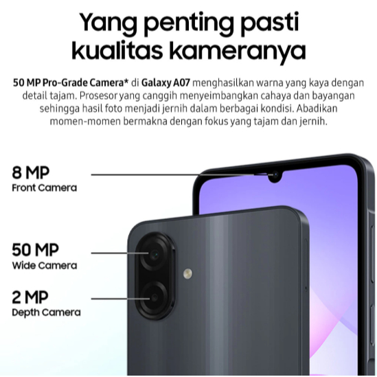 Samsung Galaxy A07 4G 4/64 GB & 4/128 GB - HP Smartphone Mediatek Helio G99 - Original 50 MP Kamera