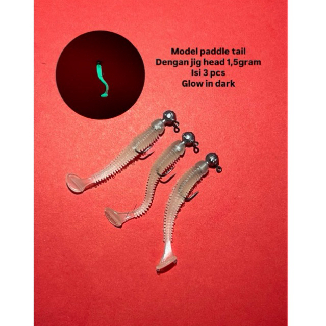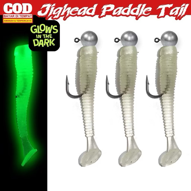 softlure paddle tail (GID) + jig head isi 3 pcs