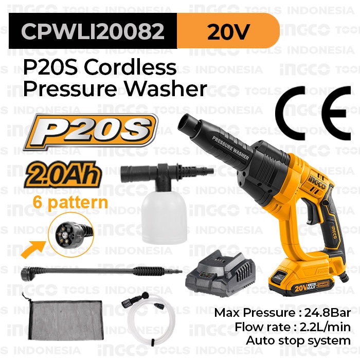 P20S Cordless Jet Cleaner (25 Bar) INGCO CPWLI20082 Mesin Pressure Steam Washer Cuci Mobil Motor