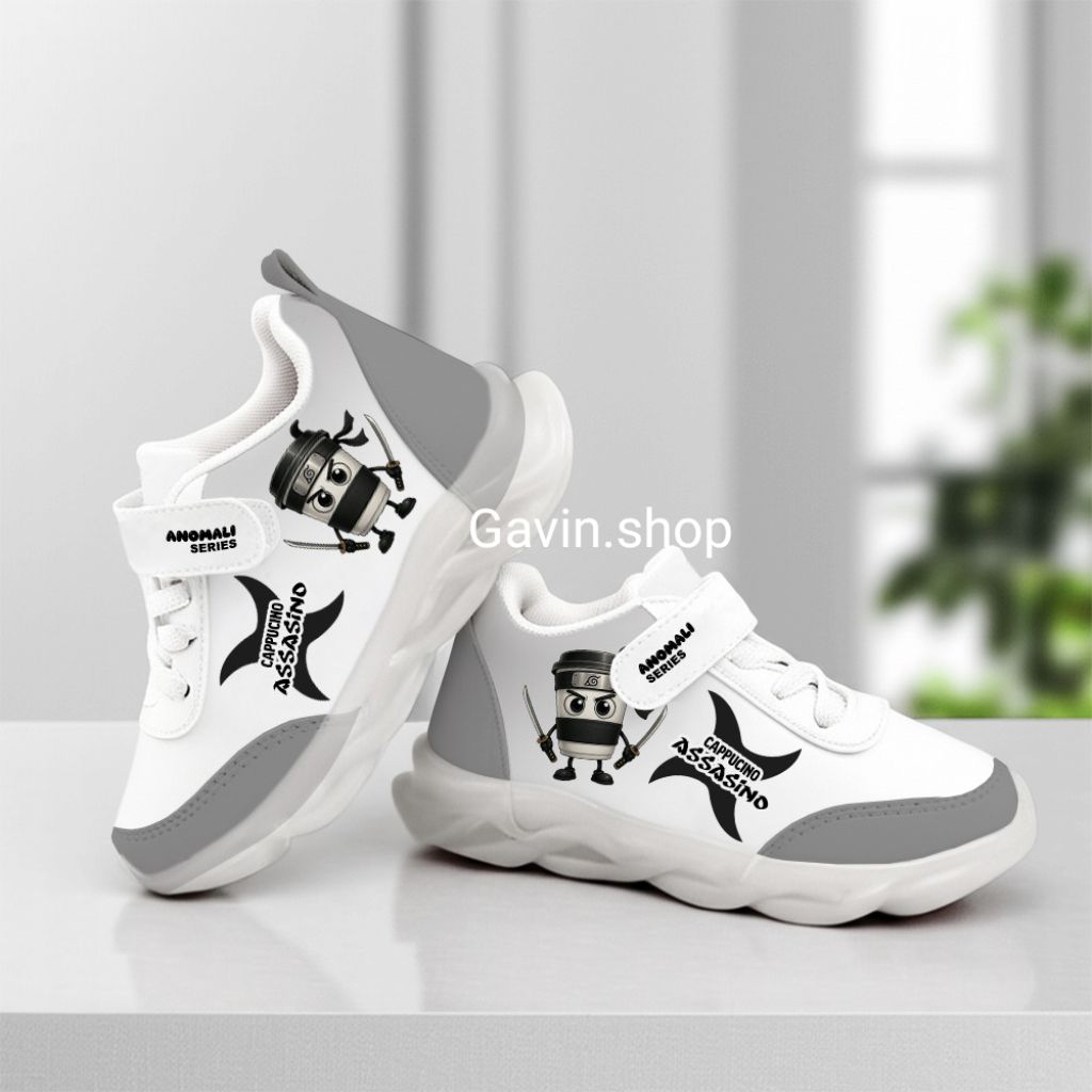 Sepatu Sekolah Anak Sneakers Lucu Kartun Anomali Series Sol Karet Tidak Licin Bahan Puma Sintesis Premium size 28-32