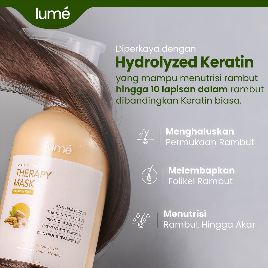LUME SCALP HAIR THERAPY MASK NON PARABEN CONDITIONER NON SILIKON ANTI RONTOK RAMBUT BERCABANG KETOMBE KERING LUMECOLORS