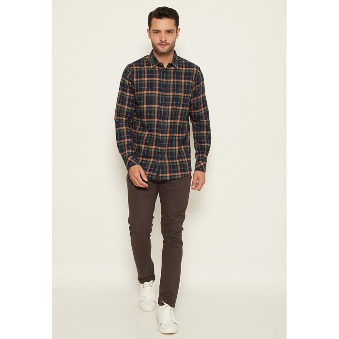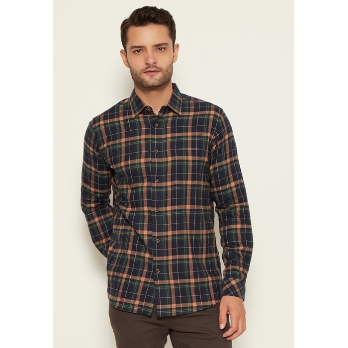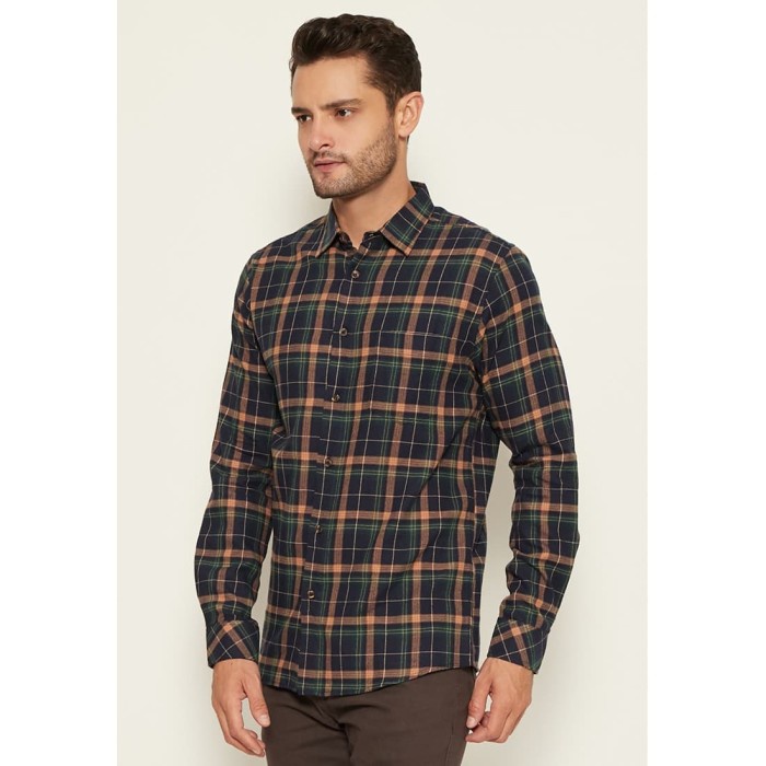 Kemeja pria M231 Kemeja Pria Flannel Warna Navy 1499 - S hitam jumbo lengan panjang putih kemeja pria polos terbaru terlaris lengan pendek I3W9