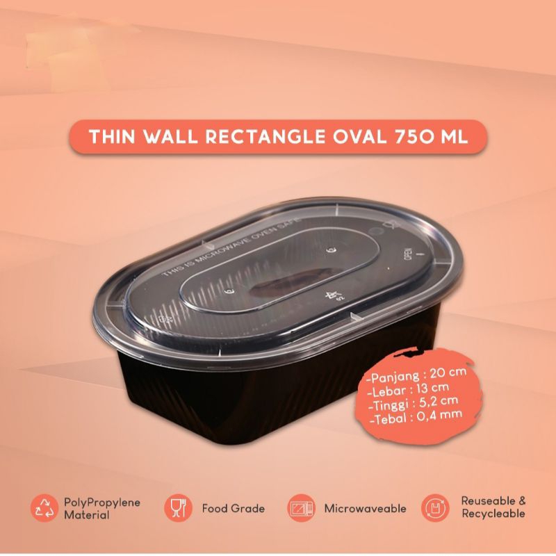 (ISI 25pcs - OVAL 750ML HITAM) Thinwall OVAL 750ml HITAM /lunch box plastik/kotak makan bento