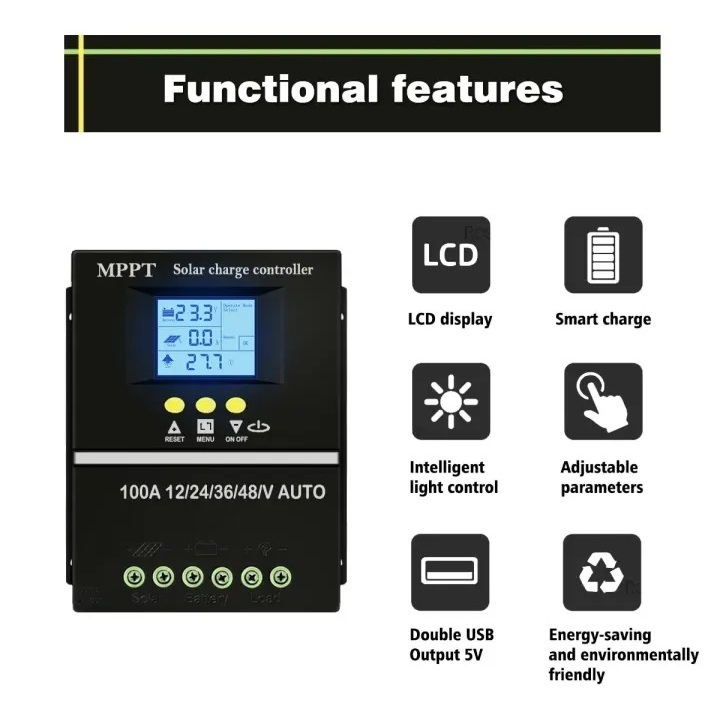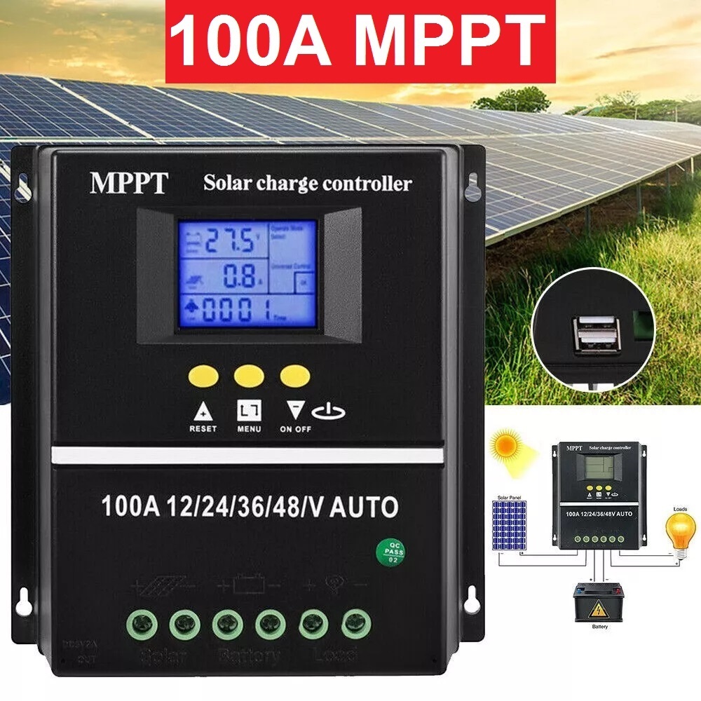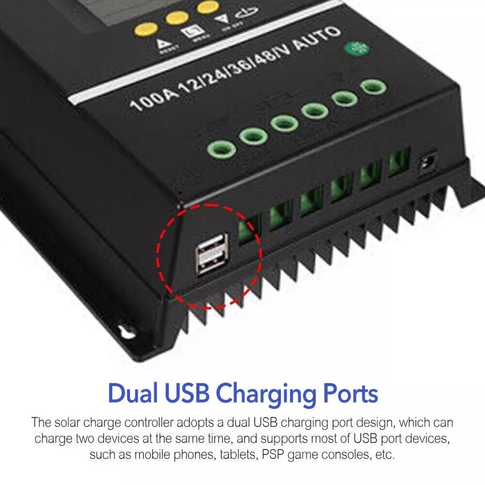 Solar Charge Controller PWM 60A 80A 100A 1200W 12V 2400W 24V 3600W 36V 4800W 48V SY10048 Smart Charging Protection LCD Display
