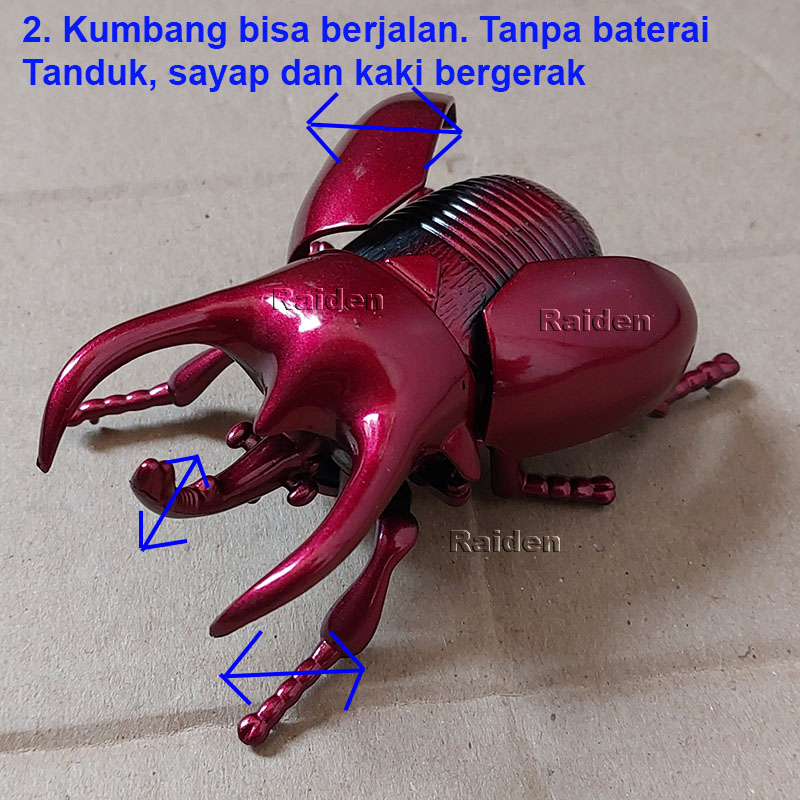 mainan serangga kumbang tanduk merah berjalan tanpa baterai